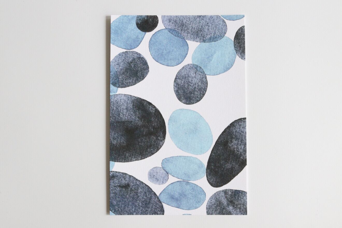 夏に訪れた北海道の浜辺にあるかどのとれた丸い小石たちの美しさに惹かれ、ポストカードにしてみたそうです。