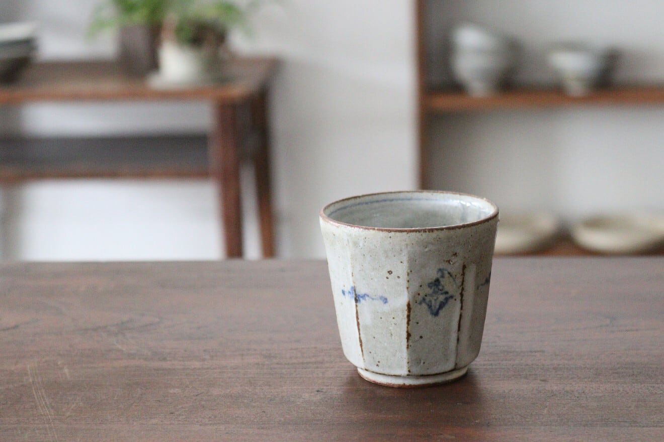 安南手とはベトナムから伝わる焼き物の技法で、滲んだような青く絵付された線が特徴です。