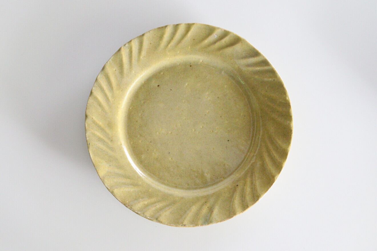 及川さんの黄釉シリーズ。淡い黄色が美しい皿です。