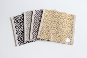 模様織り、平織り(ストッパーの役割)と交互によこ糸を入れて織りだされるオーバーショット織を用いて、テーブル周りの織り小物を作られているorange bitter chocolateさん。