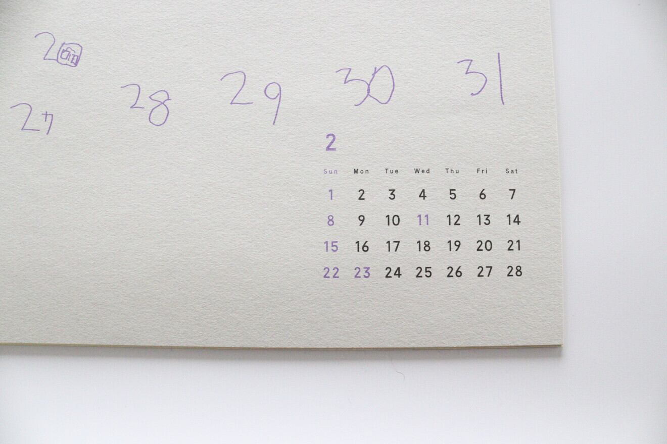 ペンや筆など画材によっても文字は違い、一人ひとりの個性を生かす数字を主役に紙質も変えていたりと毎月めくるのも楽しみになるカレンダーです。