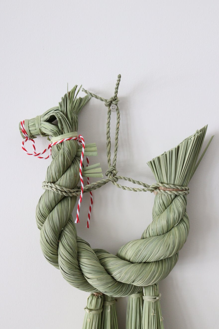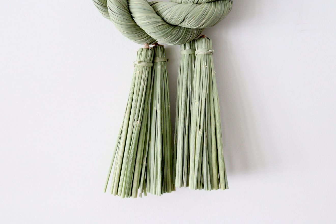 しめ飾りには稲穂が実る前の初夏に刈った青わらを使用しています。