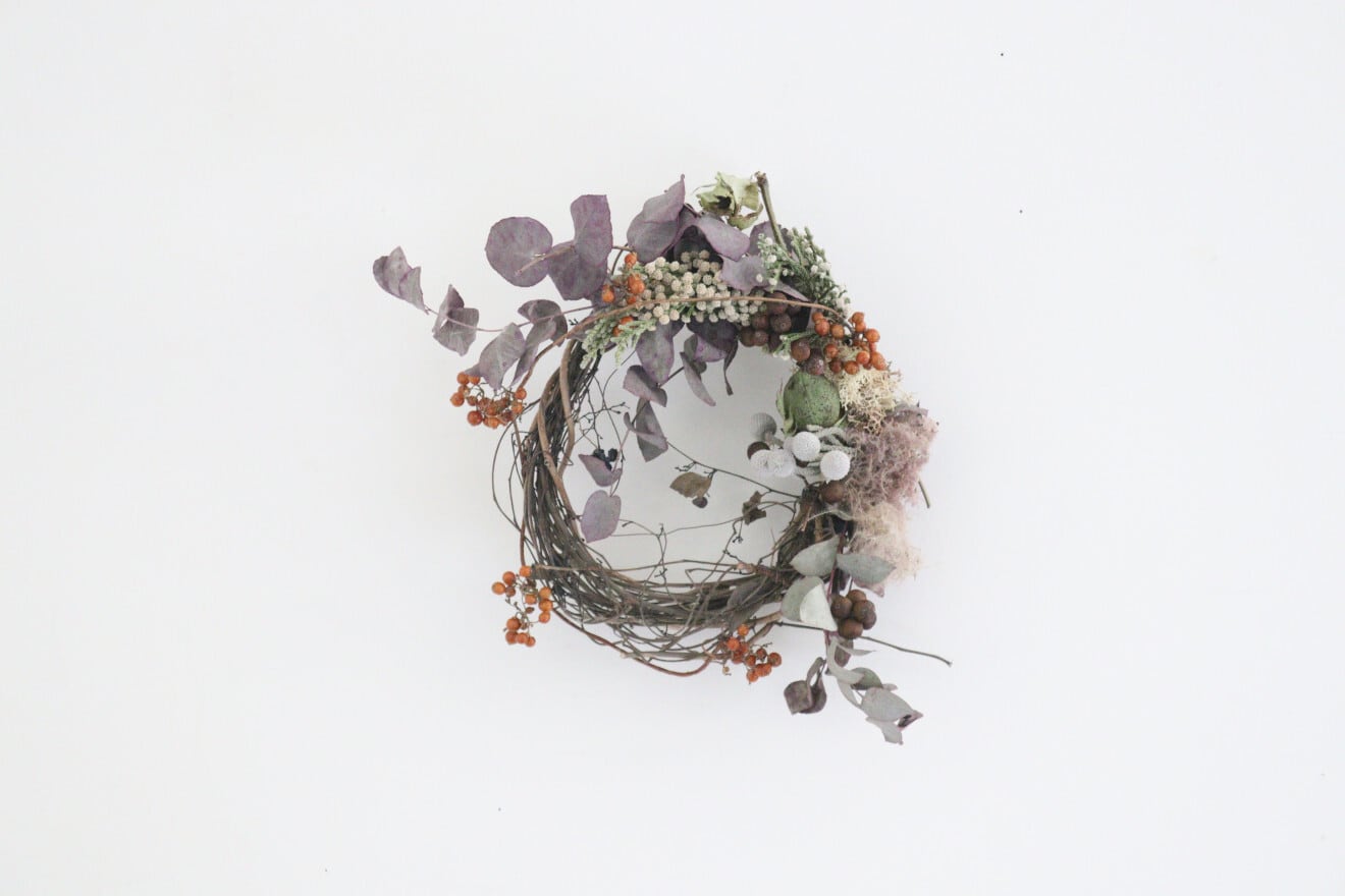 リースの葉は少しずつ褪色していきますが、冬の間、その様子もまたゆっくりとお楽しみいただければと思います。