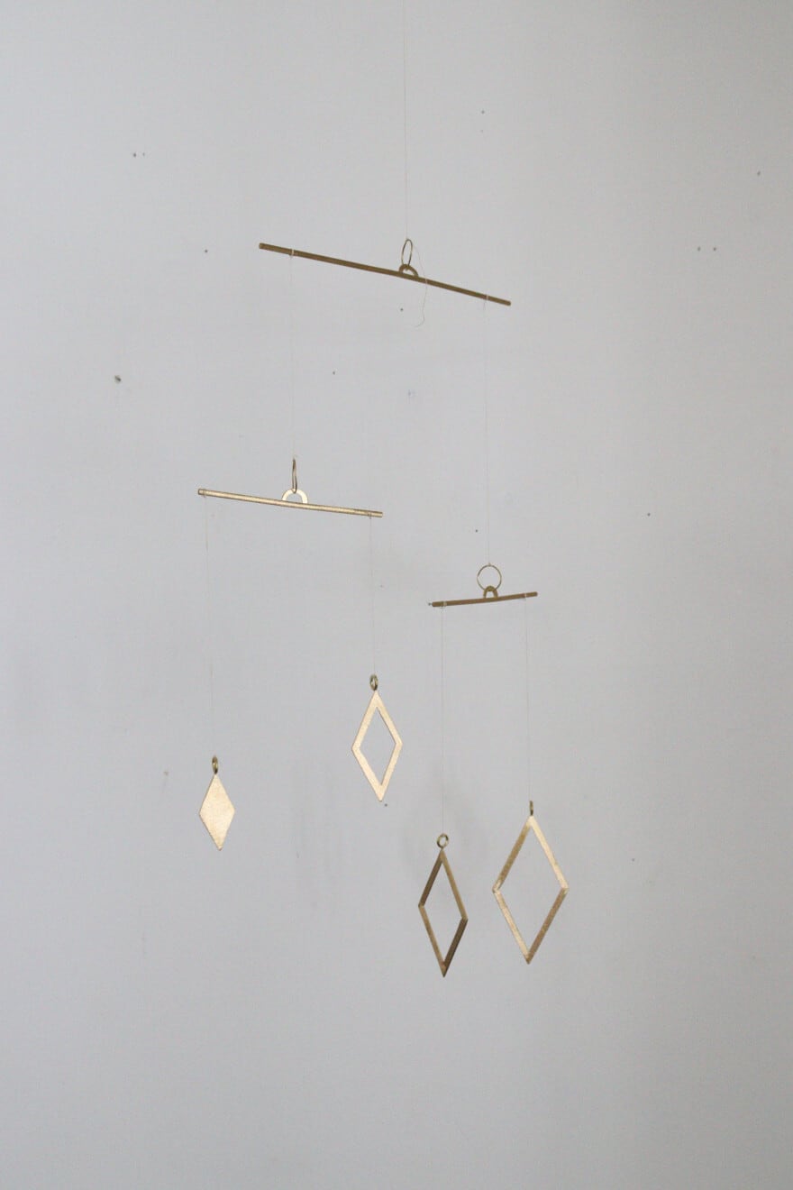 一本の細いラインを描きながら連なるアクセサリーのようなモビールです。