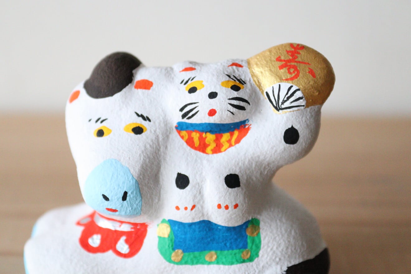 手びねりでかたちを作り手彩色で色付けされた土人形は同じものがないという一点もの。