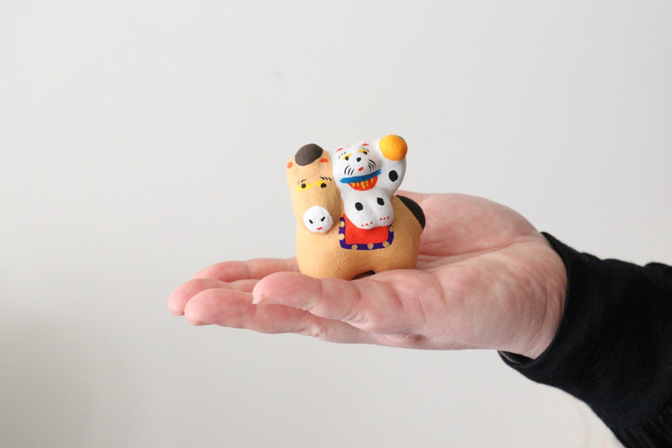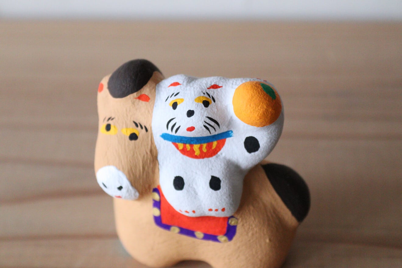 2026年度の干支の午と招き猫といったユーモラスで愛らしい土人形です。