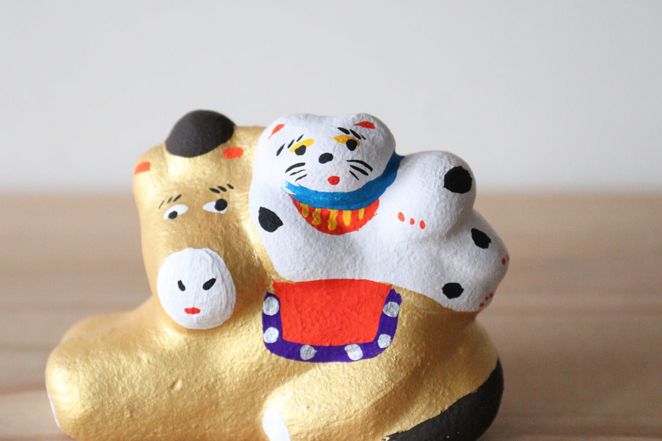 2026年度の干支の午と猫といったユーモラスで愛らしい土人形です。