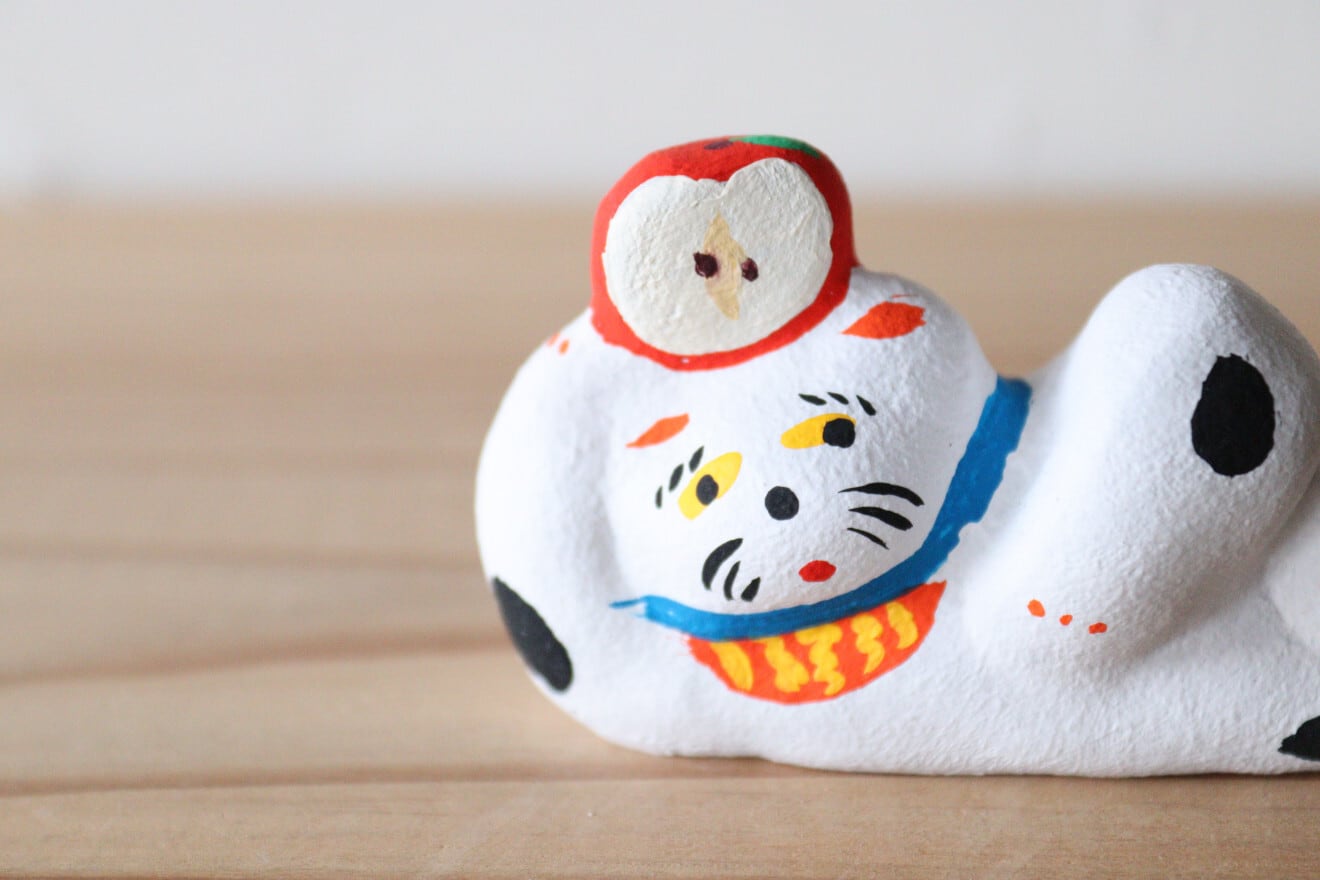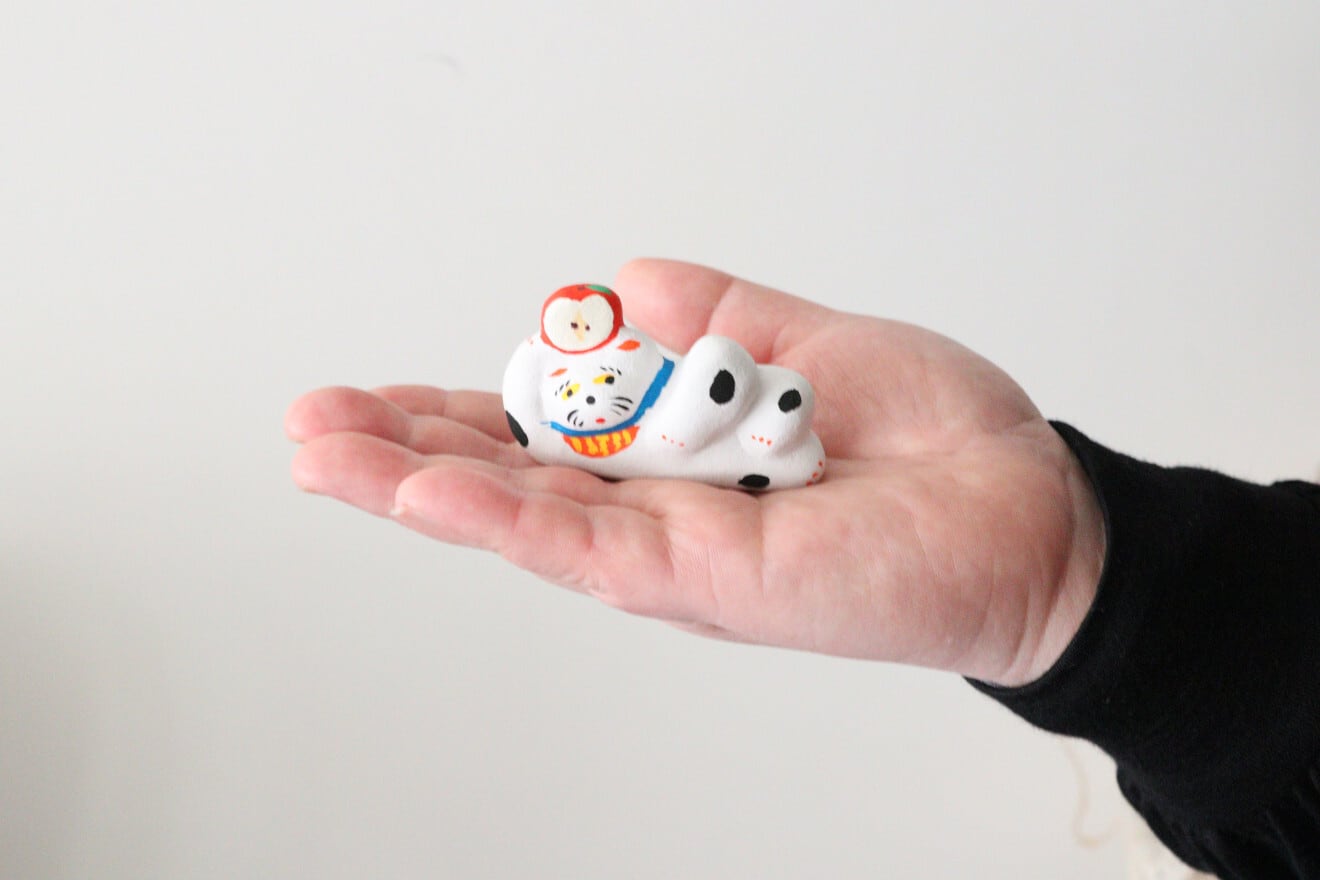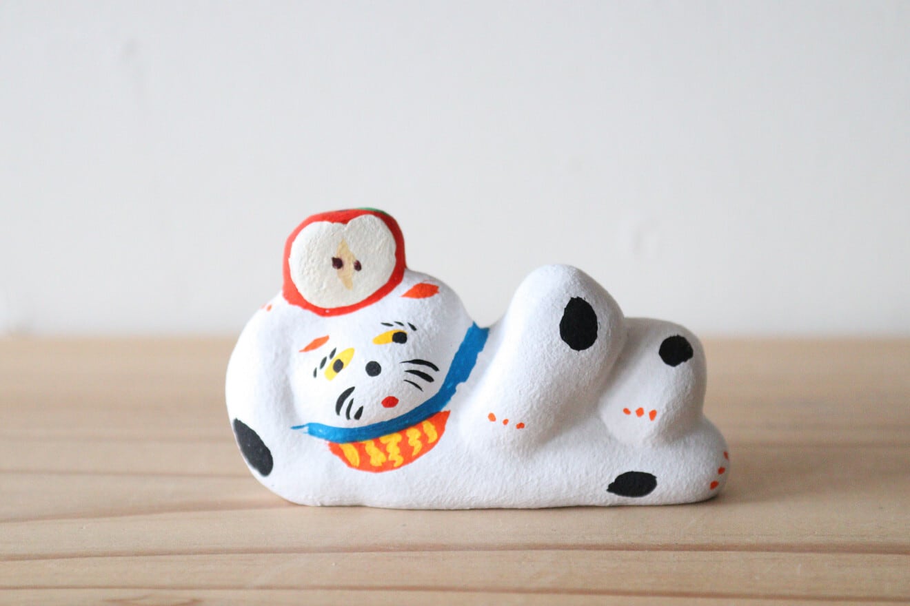 寝招き猫は寝ながら福を招き入れる縁起物。
