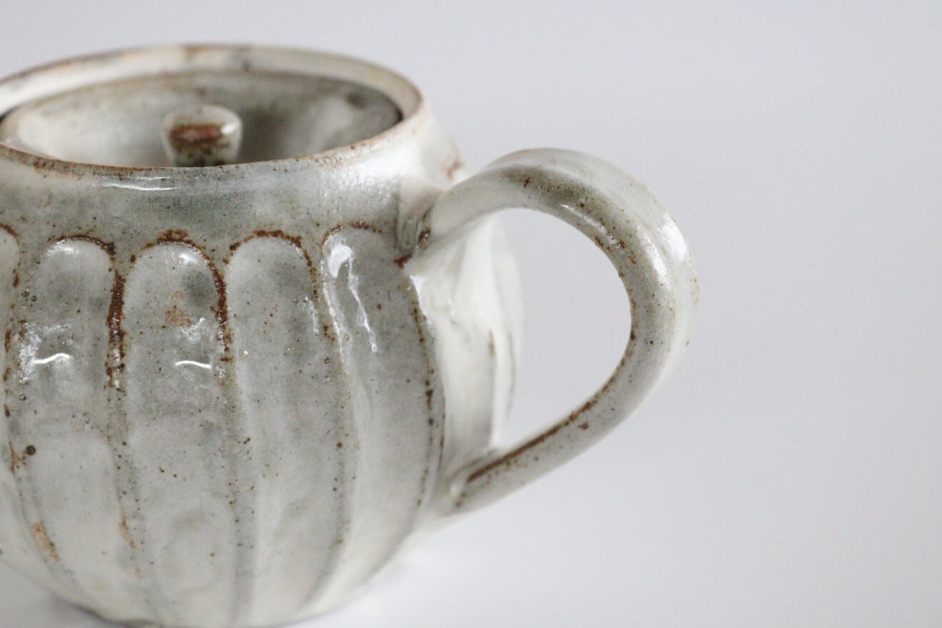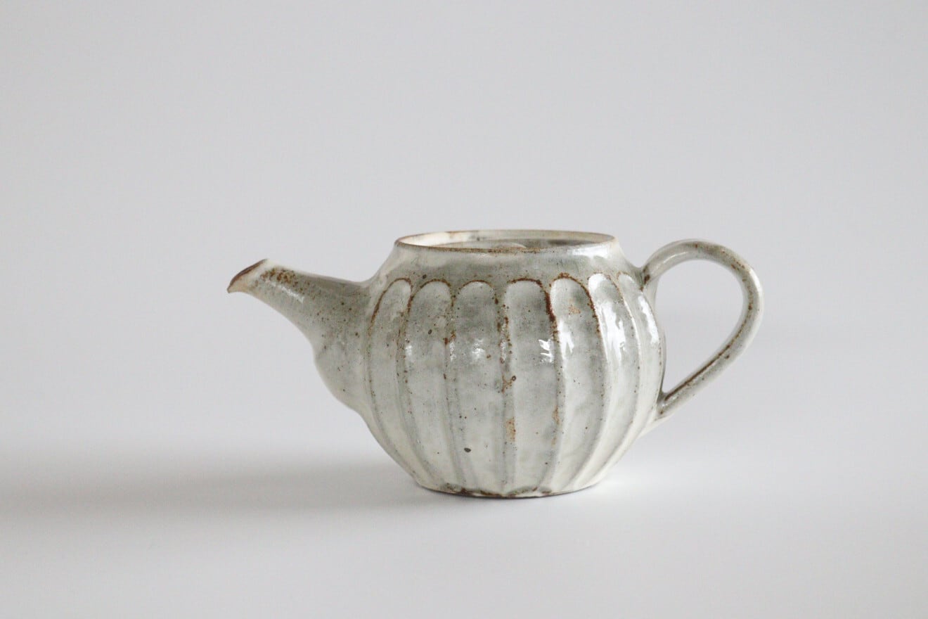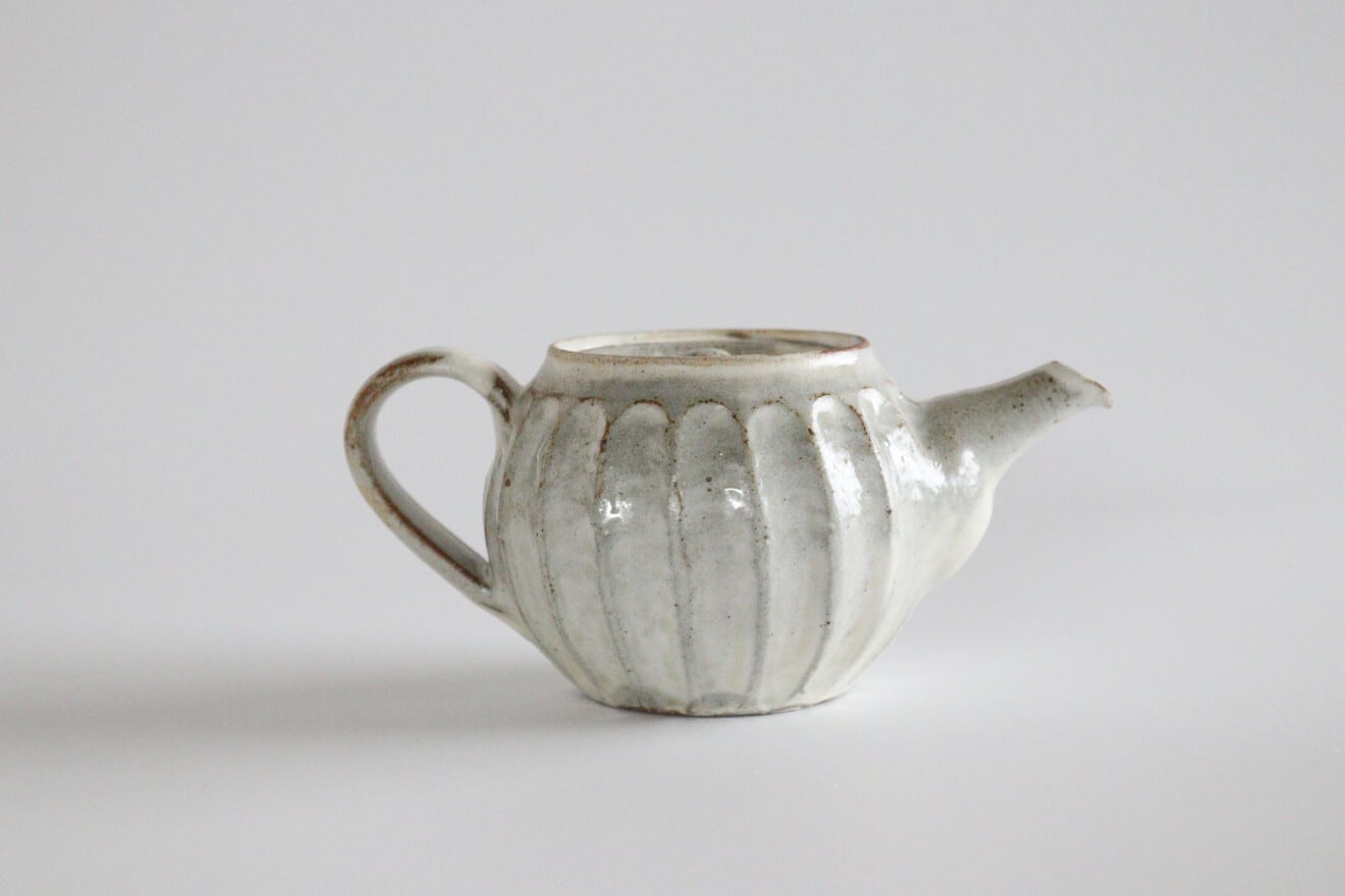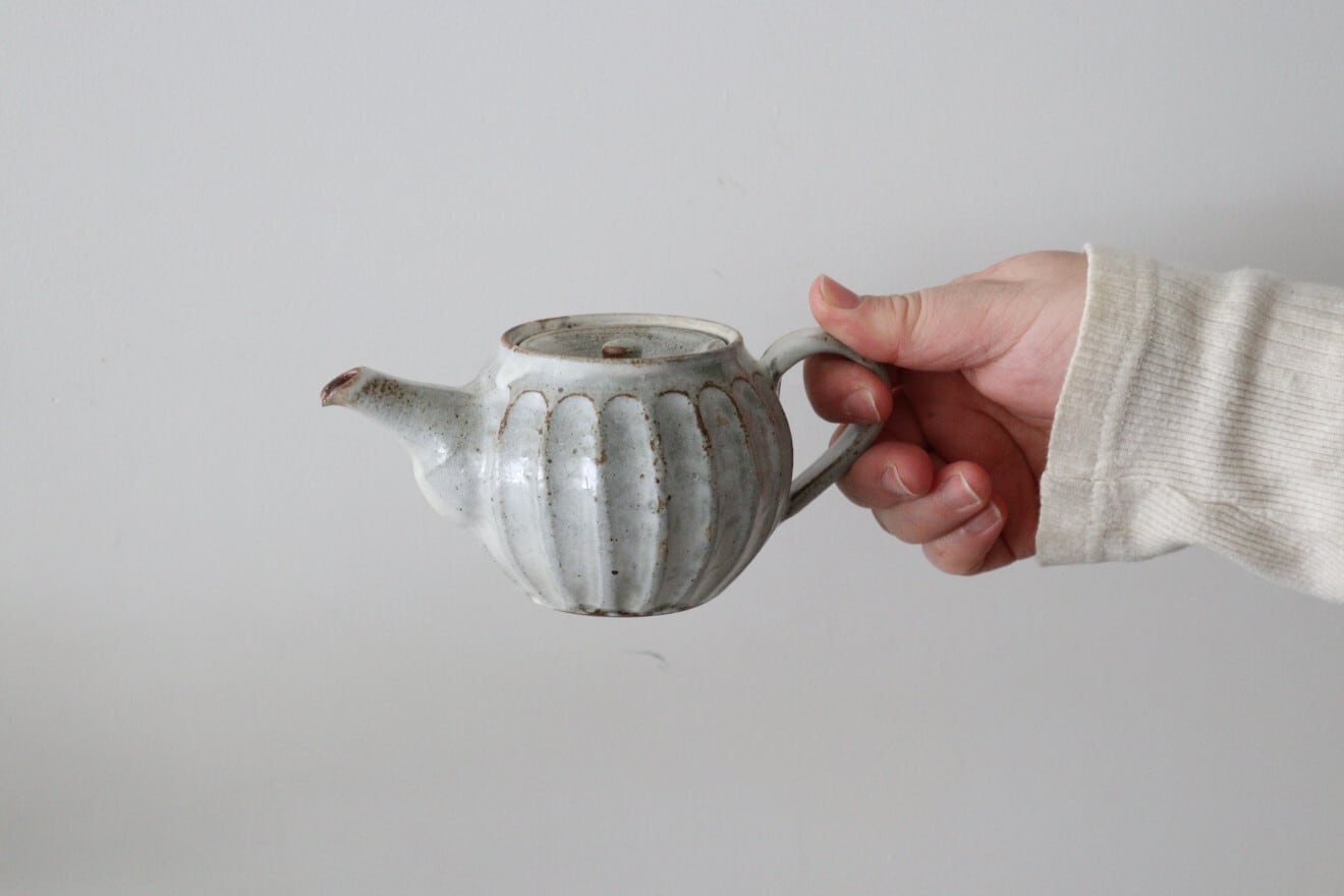 丸みのあるフォルムと蓋にちいさなつまみがついた可愛らしい急須。