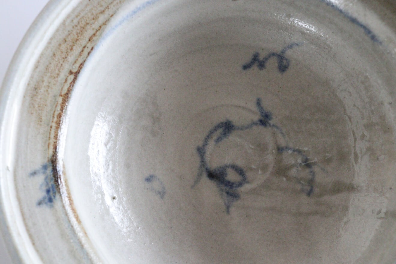 安南手はベトナムから伝わる焼き物の技法で、滲んだような青く絵付された線が特徴です。