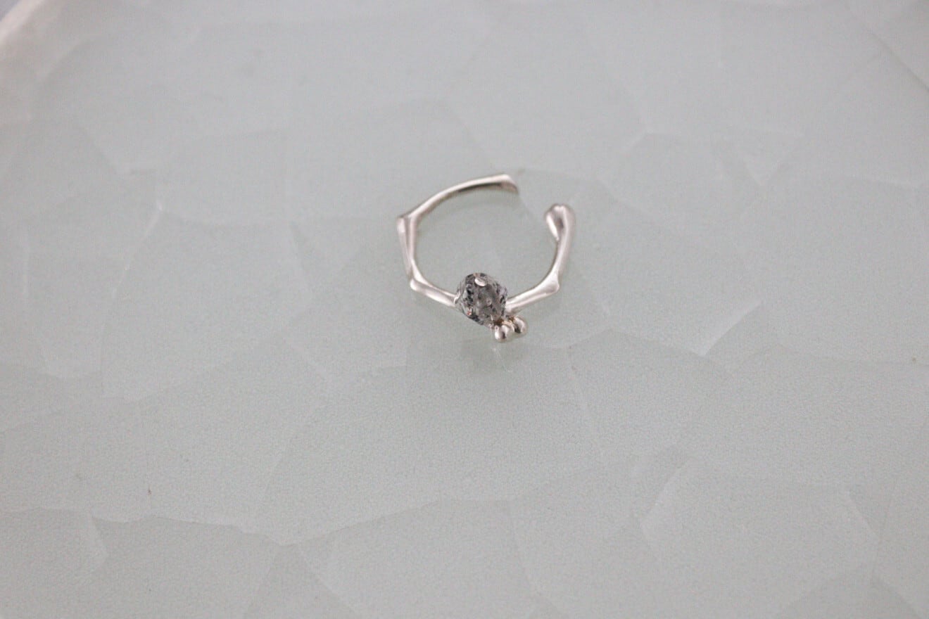 リング部分はシルバーで茎を、花は天然石でそれぞれのカタチをひとつひとつ丁寧に制作されており、繊細で細やかに表現されています。