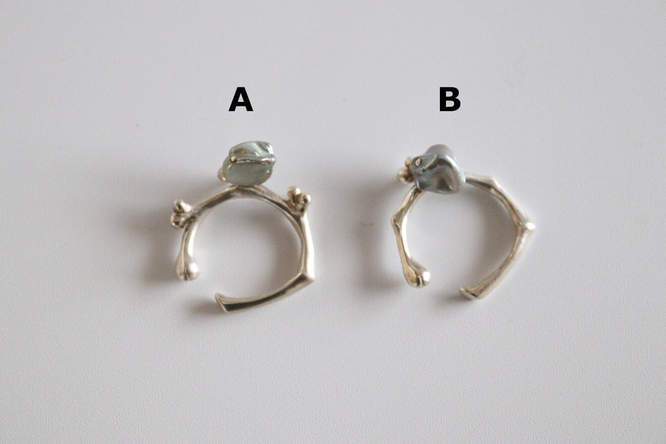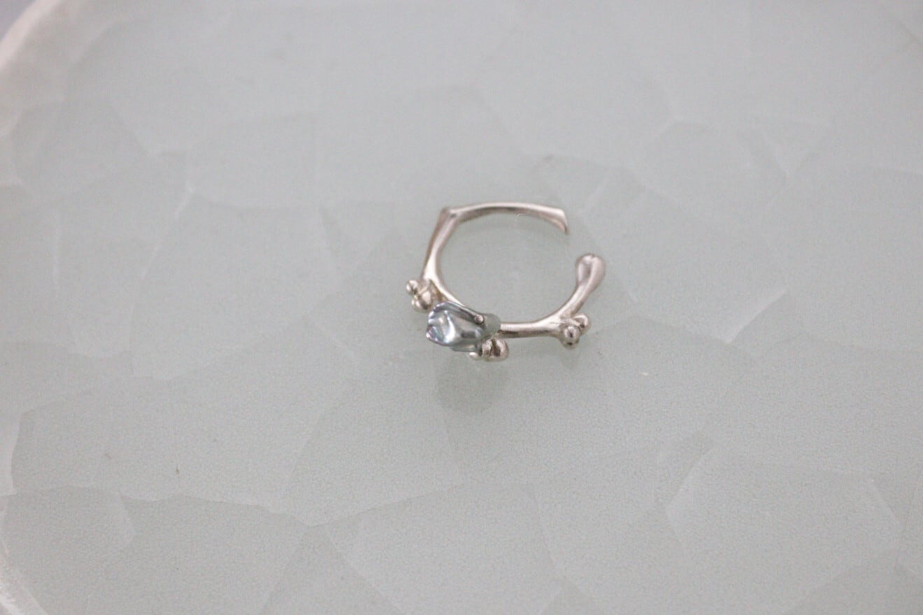 リング部分はシルバーで茎を、花は天然石でそれぞれのカタチをひとつひとつ丁寧に制作されており、繊細で細やかに表現されています。