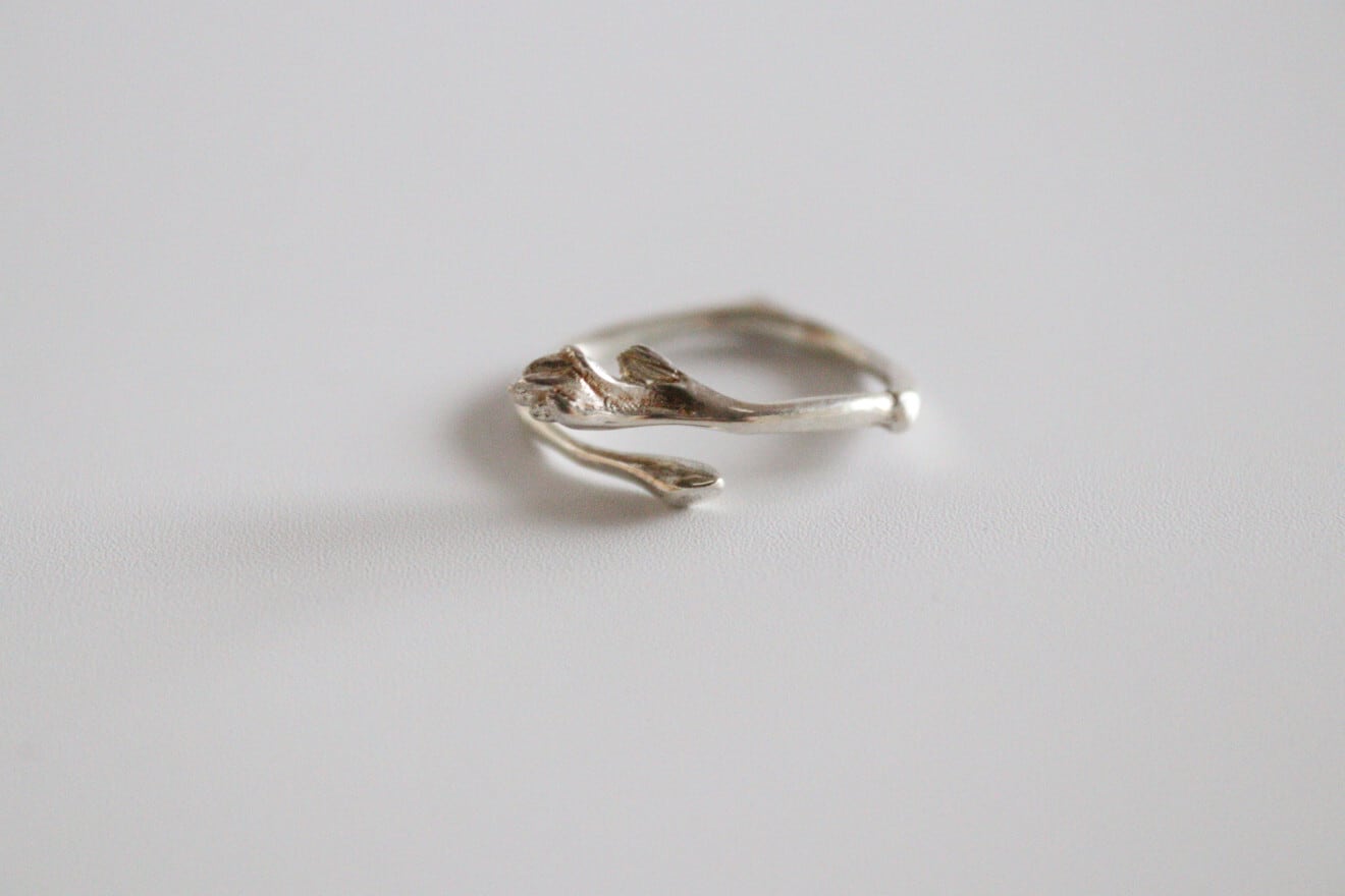 リングを枝に見立てその先に植物の芽がついた、春を待つ冬芽をイメージしたリングです。
