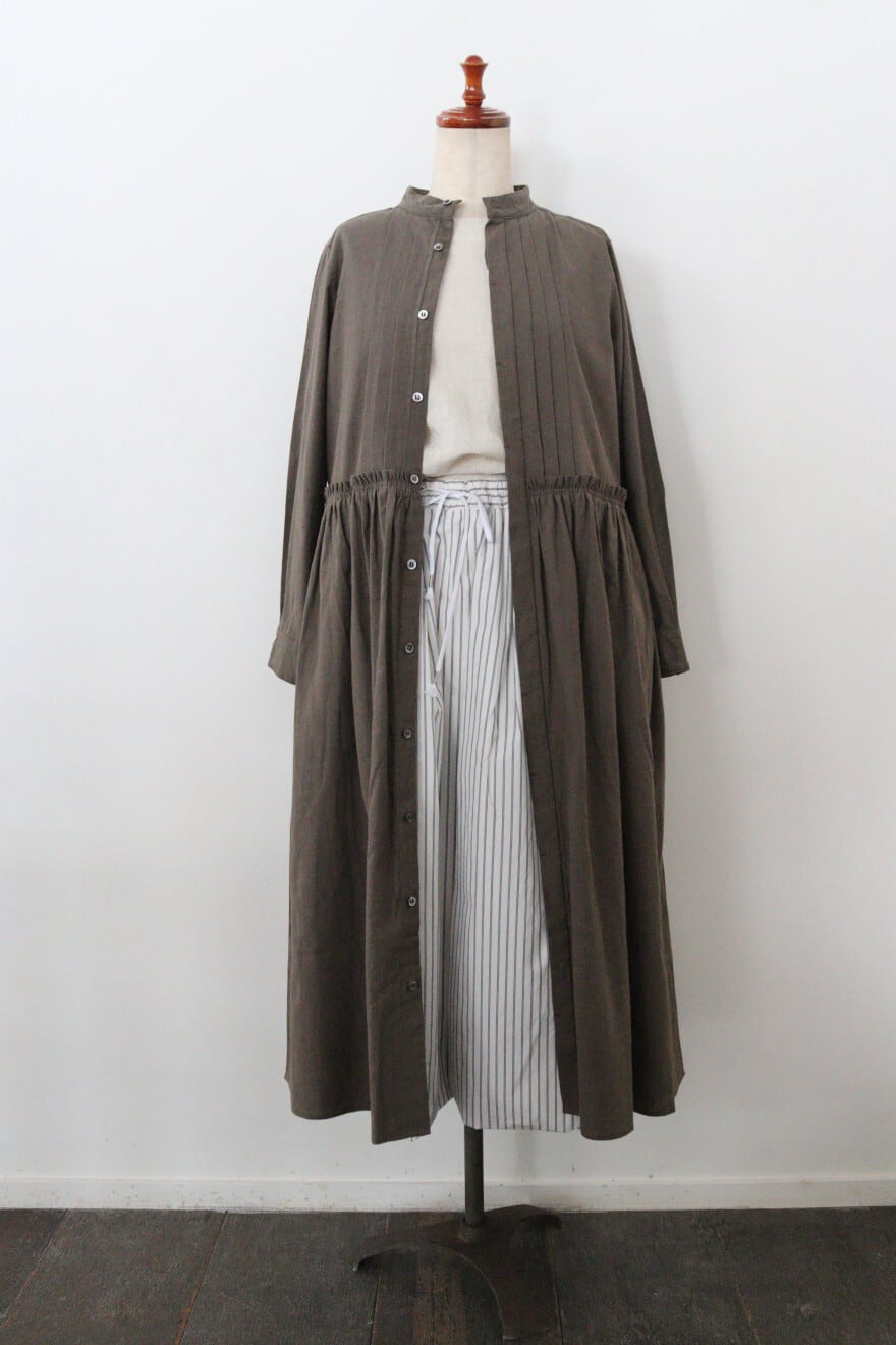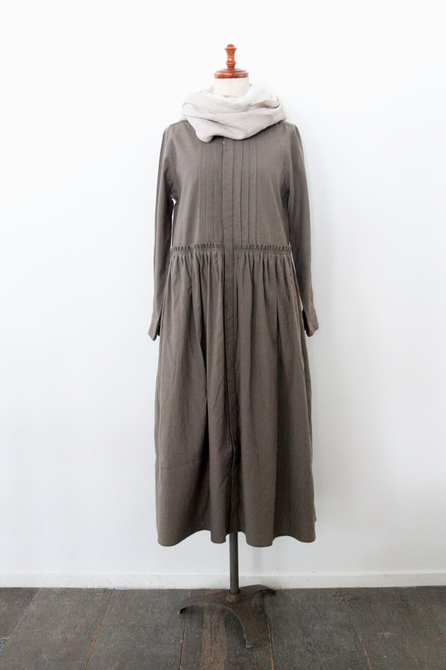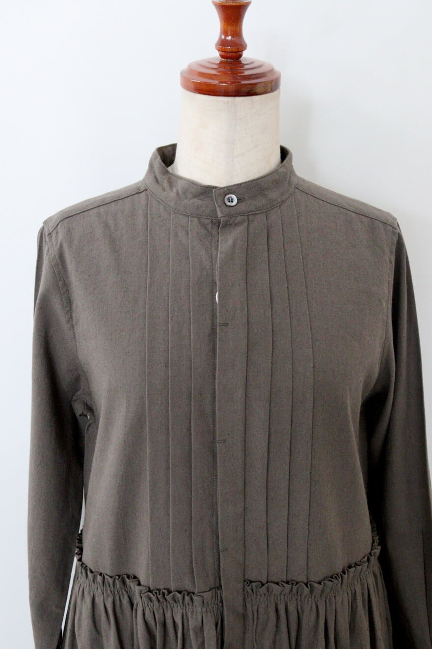 胸元の細かなピンタックやウエスト切り替え部分のギャザーなど細かなディティールにこだわった一枚。