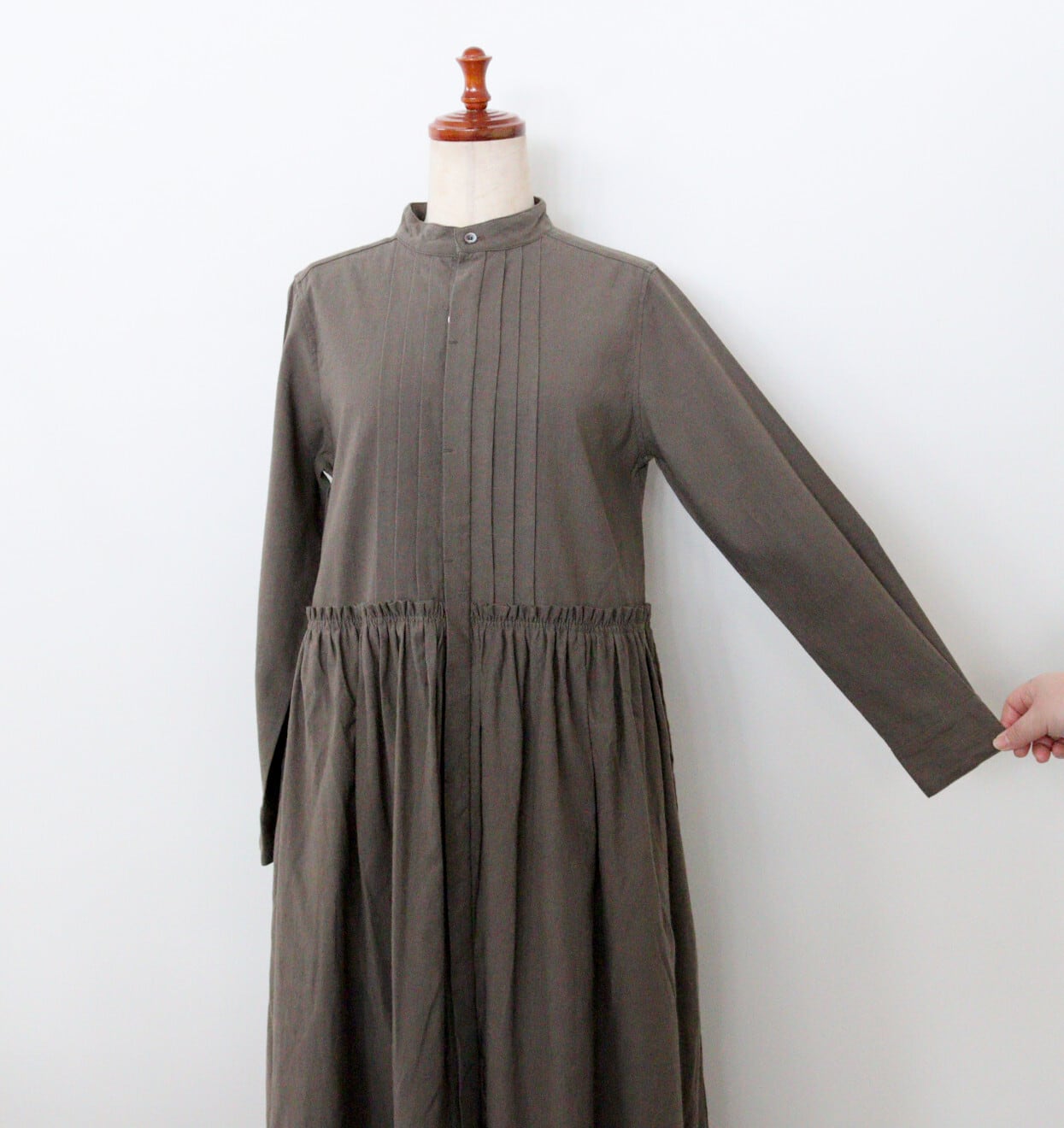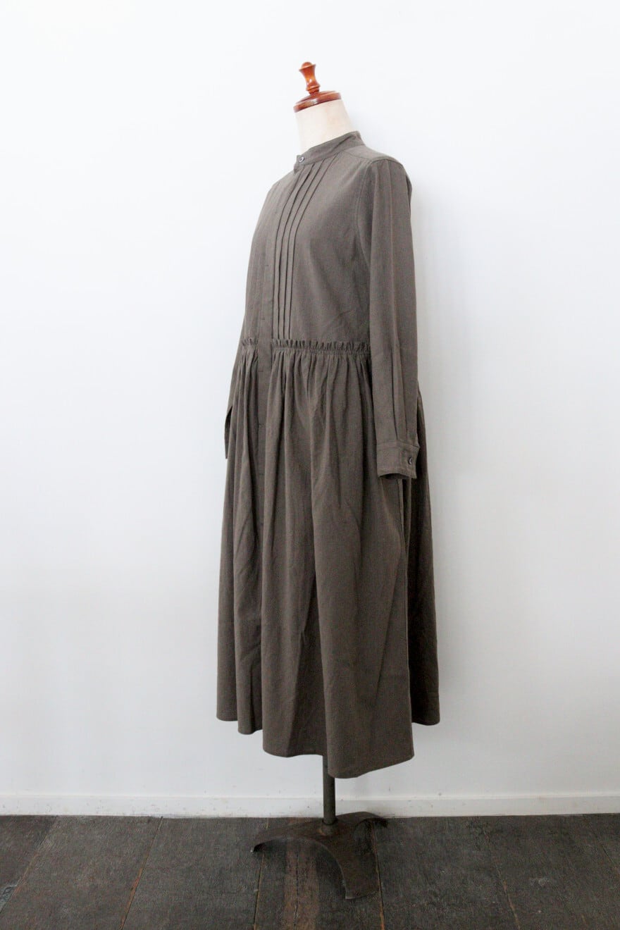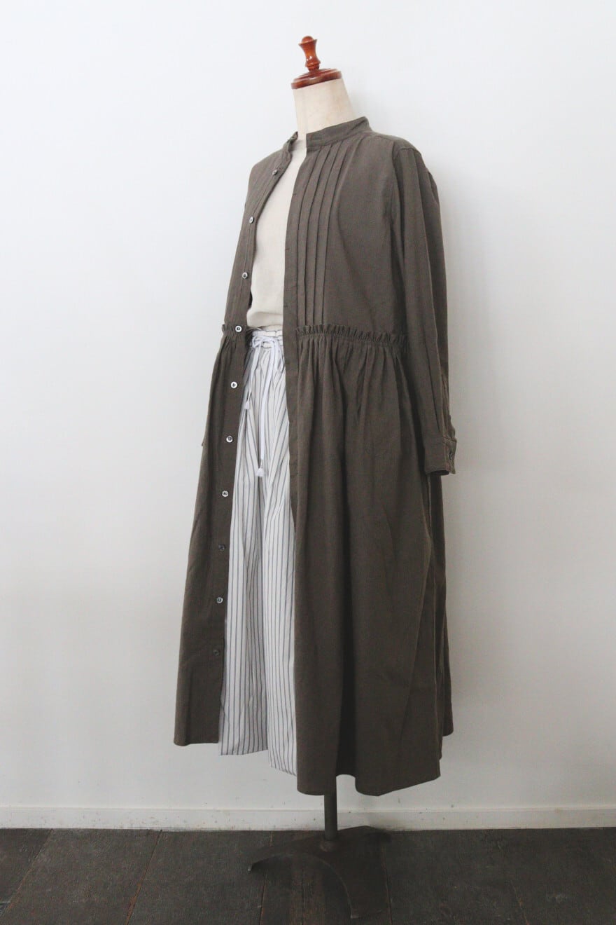 胸元の細かなピンタックやウエスト切り替え部分のギャザーなど細かなディティールにこだわった一枚。