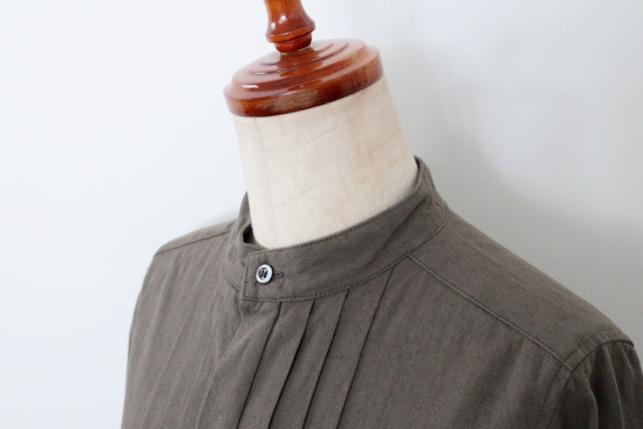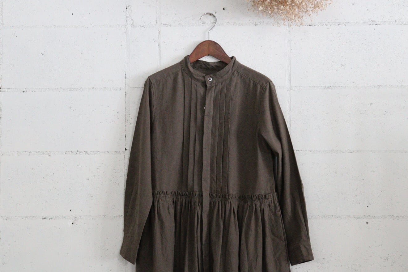 universal tissu トリプルワッシャーリネンコットンタックシャツワンピース