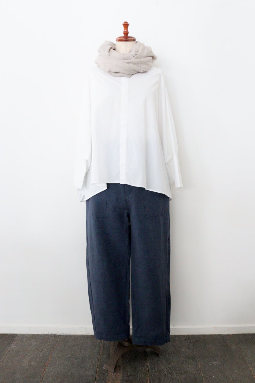 程よい緩さで裾にかけて細くテーパードしたシルエットが綺麗。