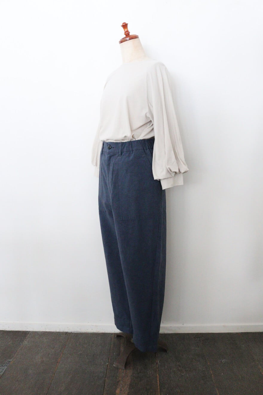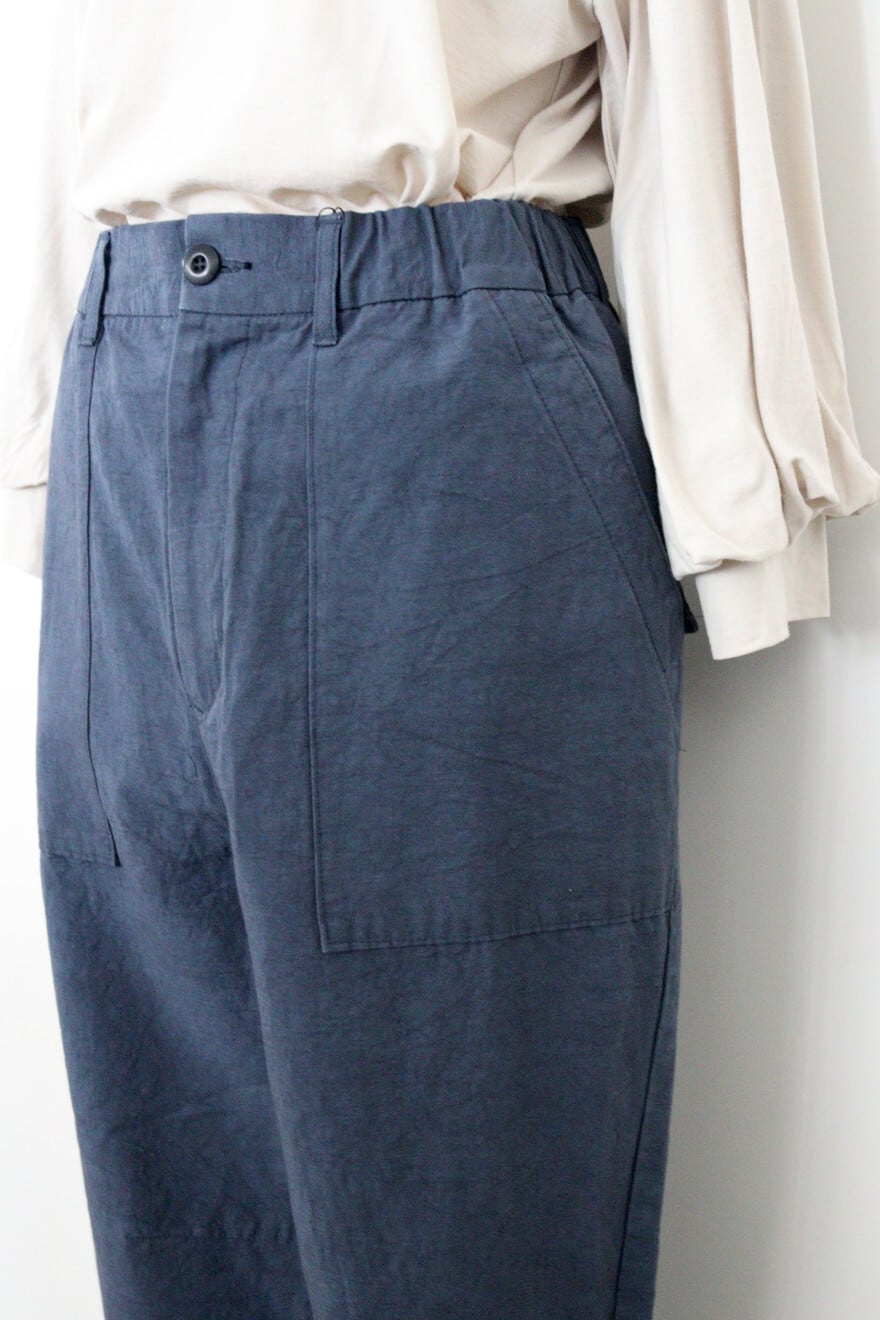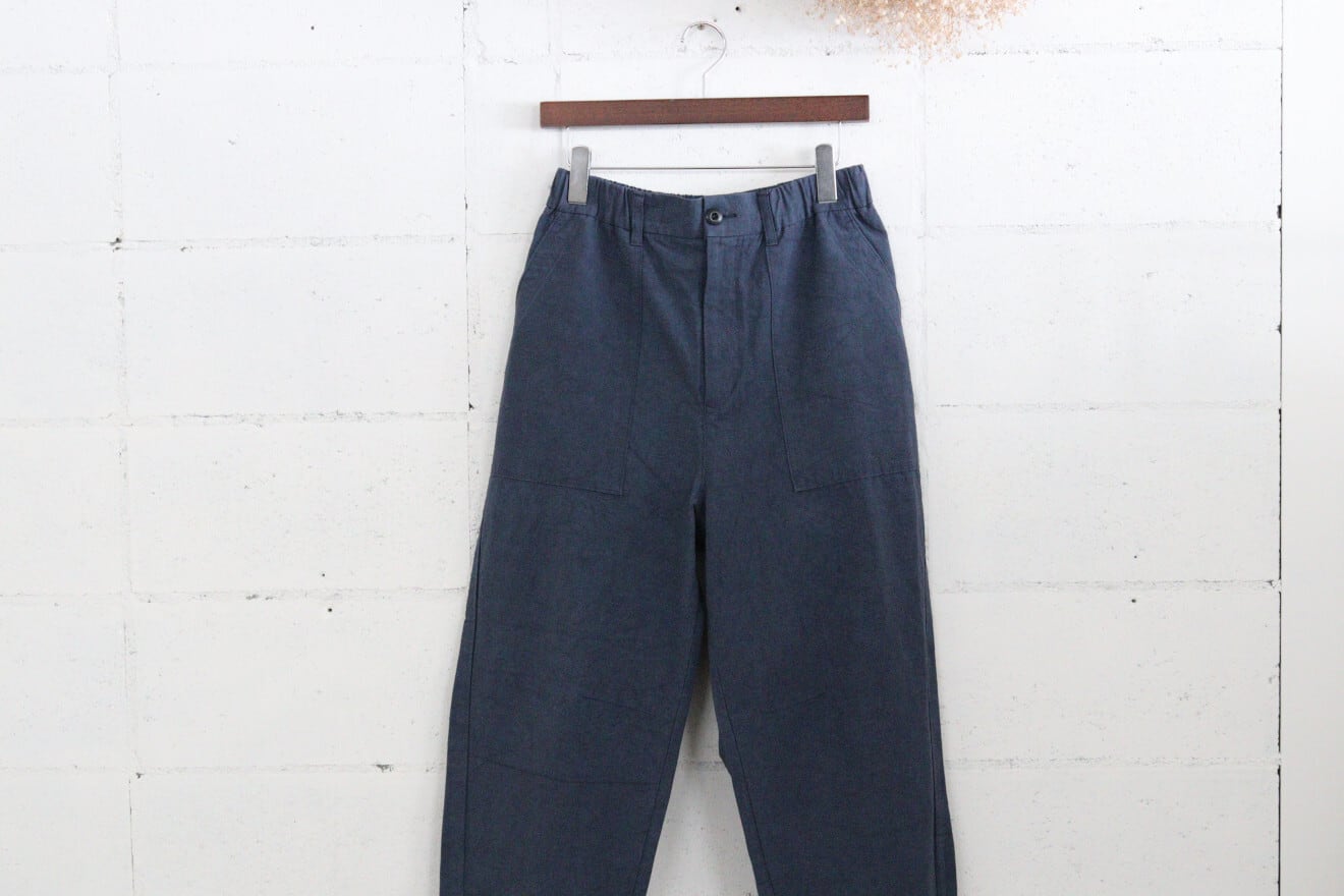 少しムラのあるニュアンスのあるカラーと自然なワッシャー感のある生地が魅力のワークパンツです。