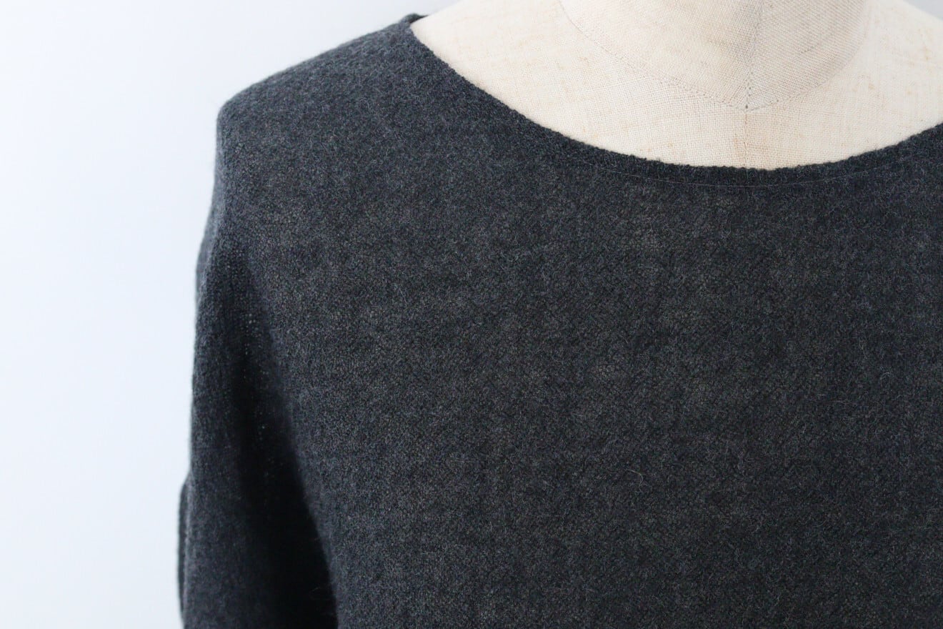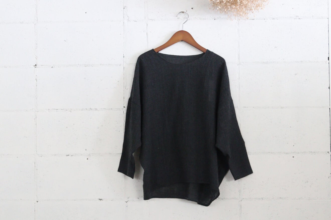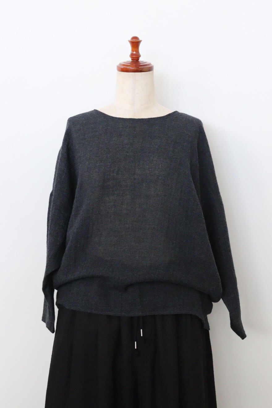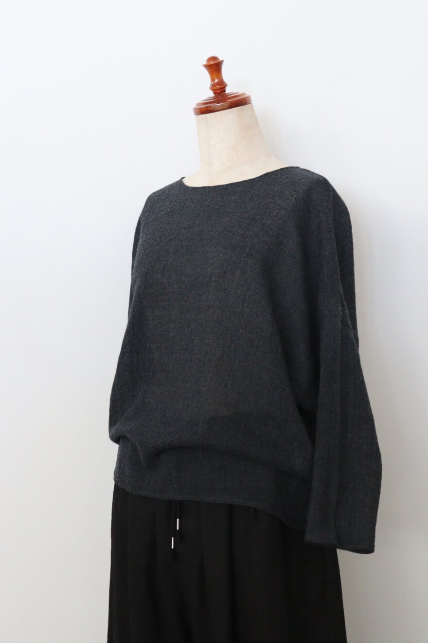 ふっくらと加工されたウールガーゼを使用したドルマンスリーブのウールニットソー。