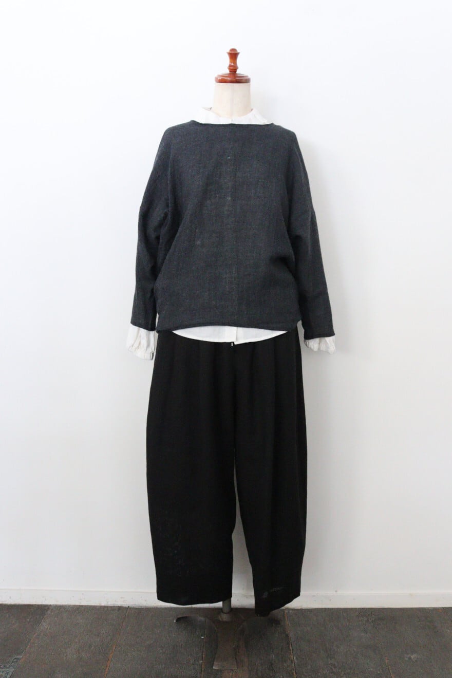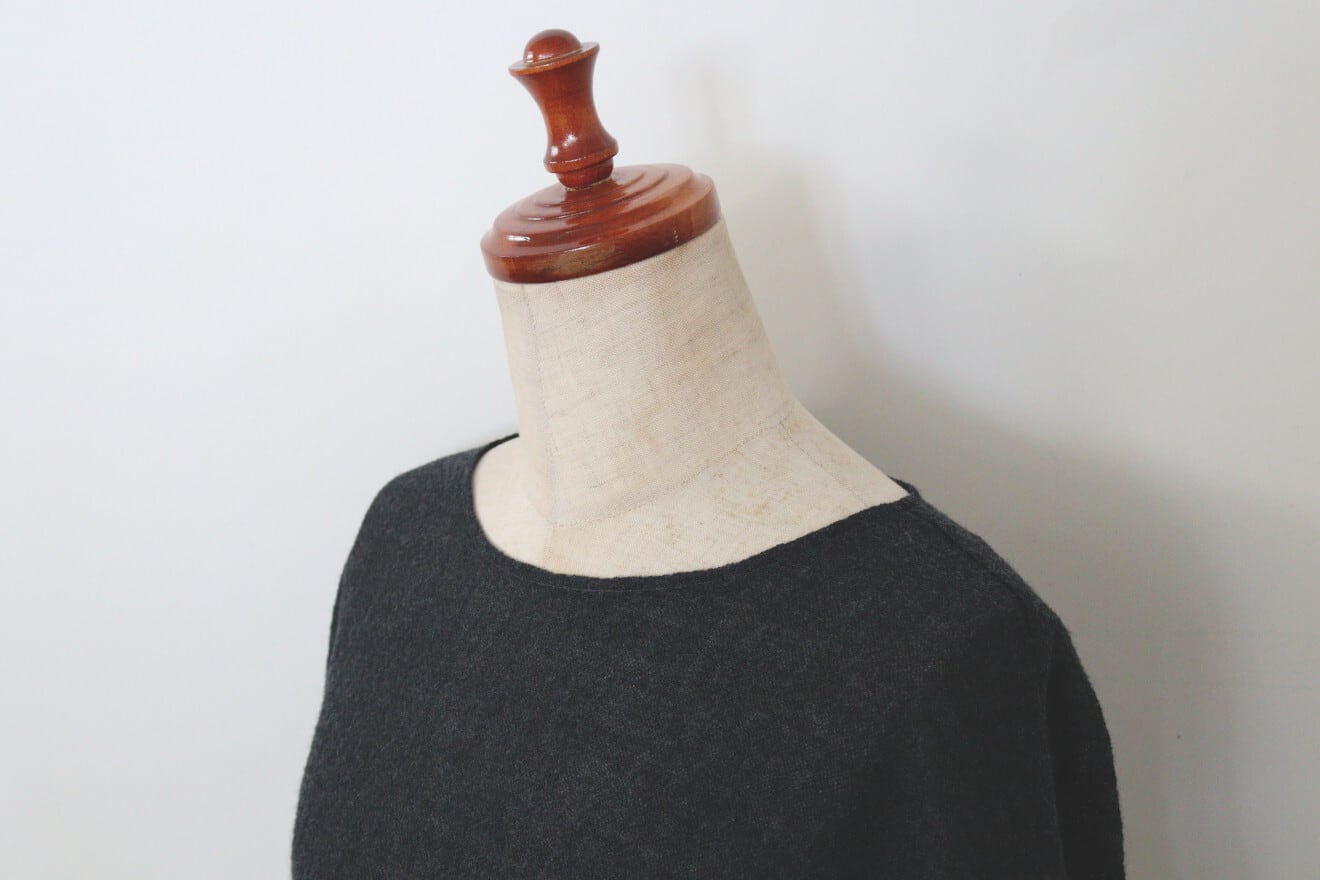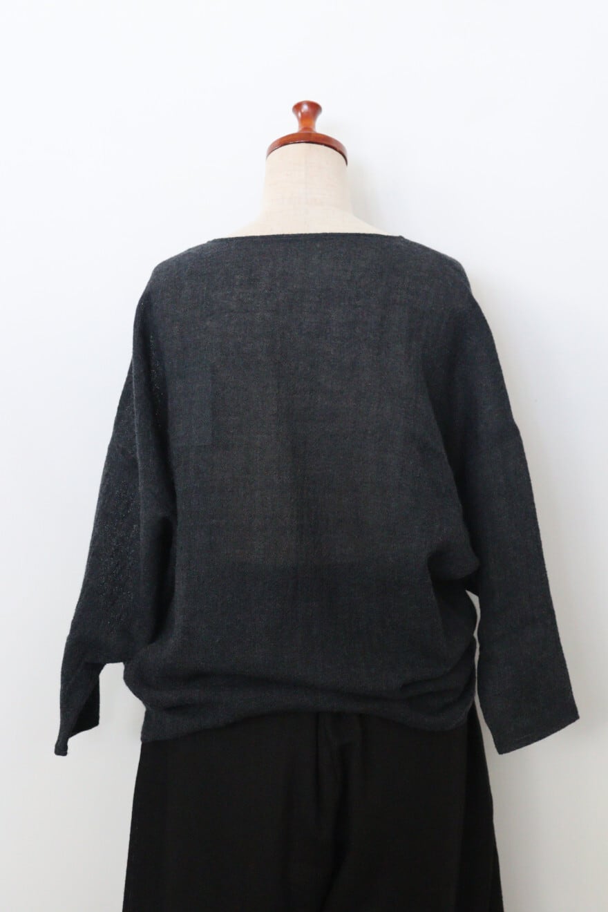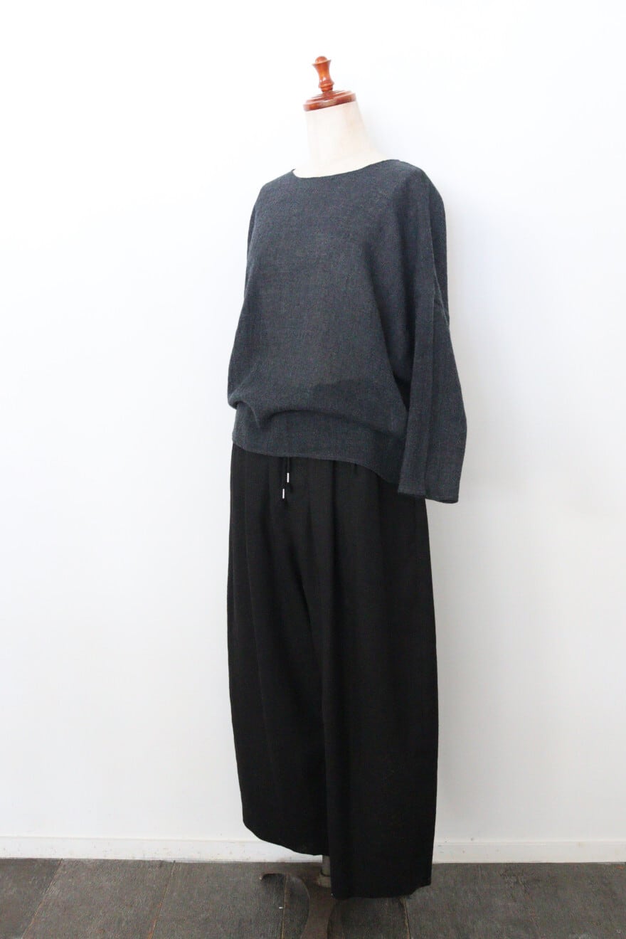 ふっくらと加工されたウールガーゼを使用したドルマンスリーブのウールニットソー。