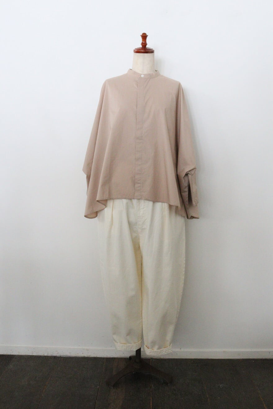 身幅をたっぷり取ったポンチョのようなシルエットのシャツ。