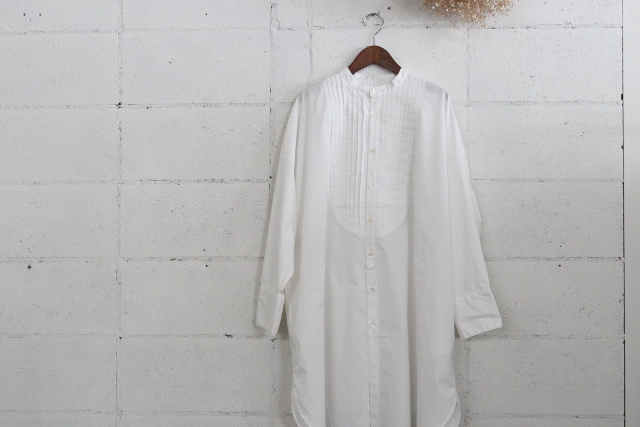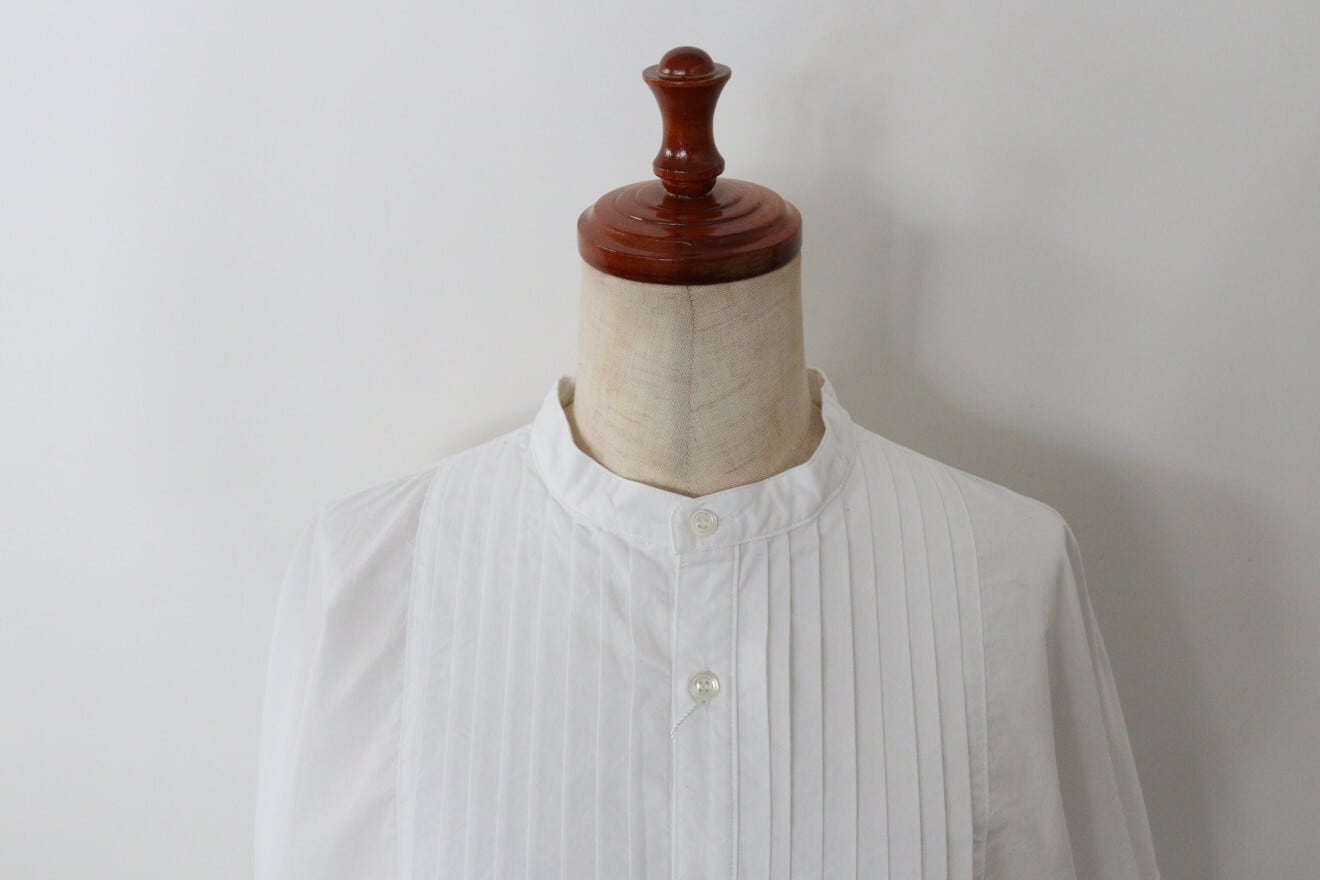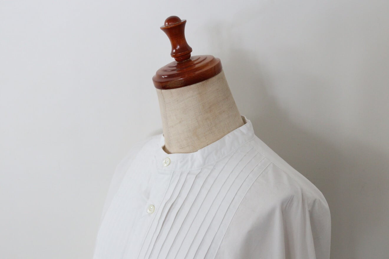 ヨーク部分のピンタックやカフスのデザイン、後ろの中心にスリットがなど、1枚で様々なディティールを感じる一枚です。