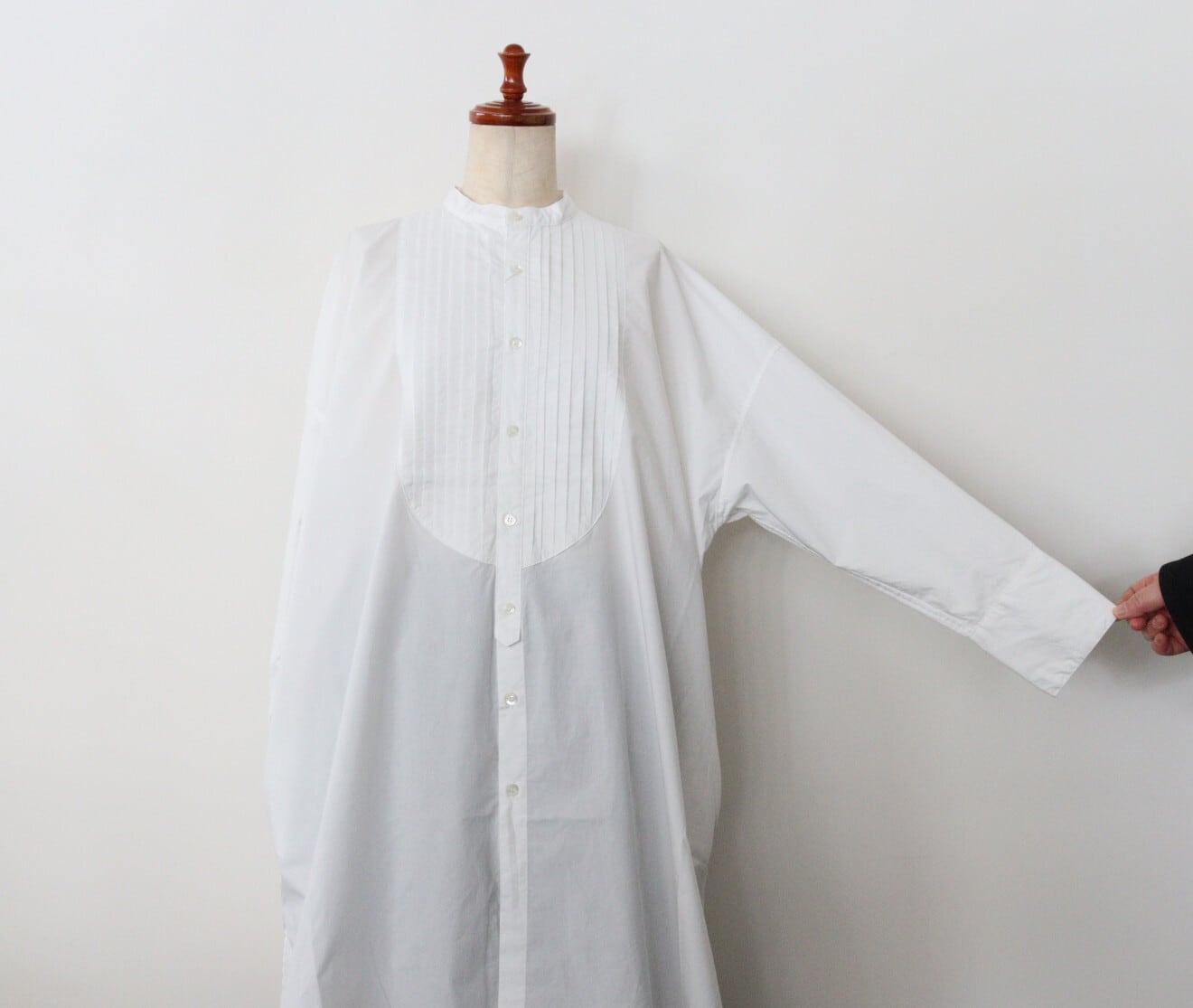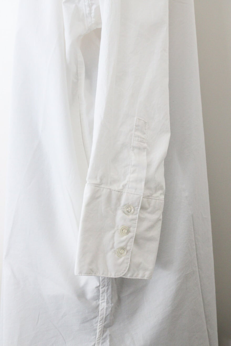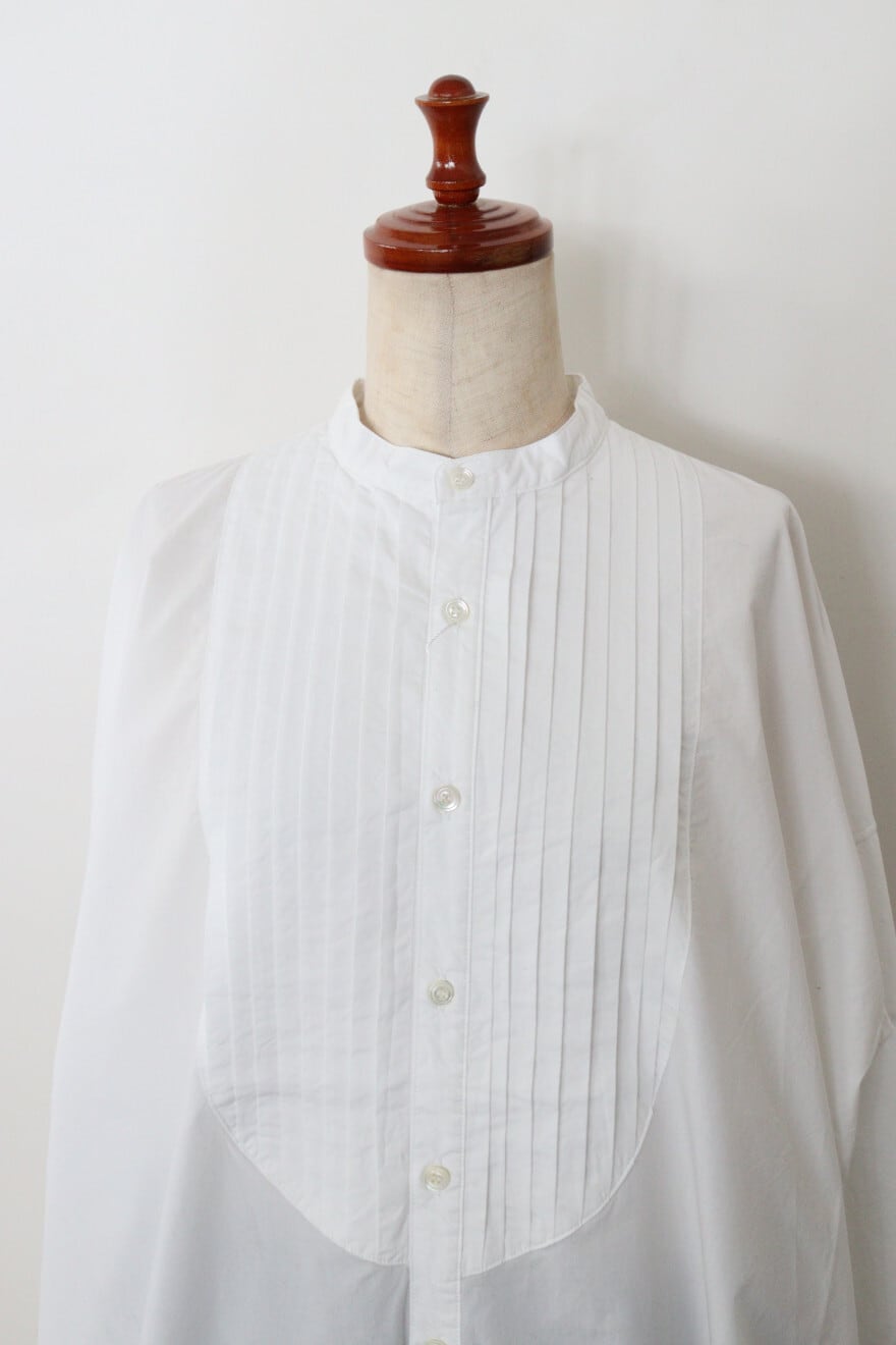 ヨーク部分のピンタックやカフスのデザイン、後ろの中心にスリットがなど、1枚で様々なディティールを感じる一枚です。
