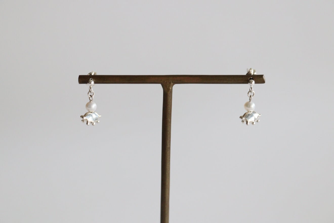 モウセンゴケという名の植物をモチーフに、淡水パールをあしらった可愛らしいカタチのピアスです。