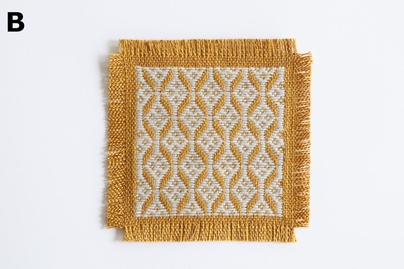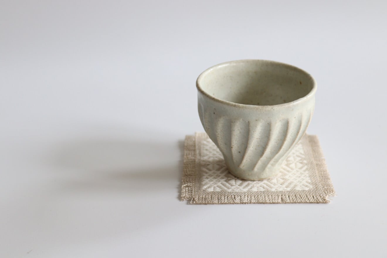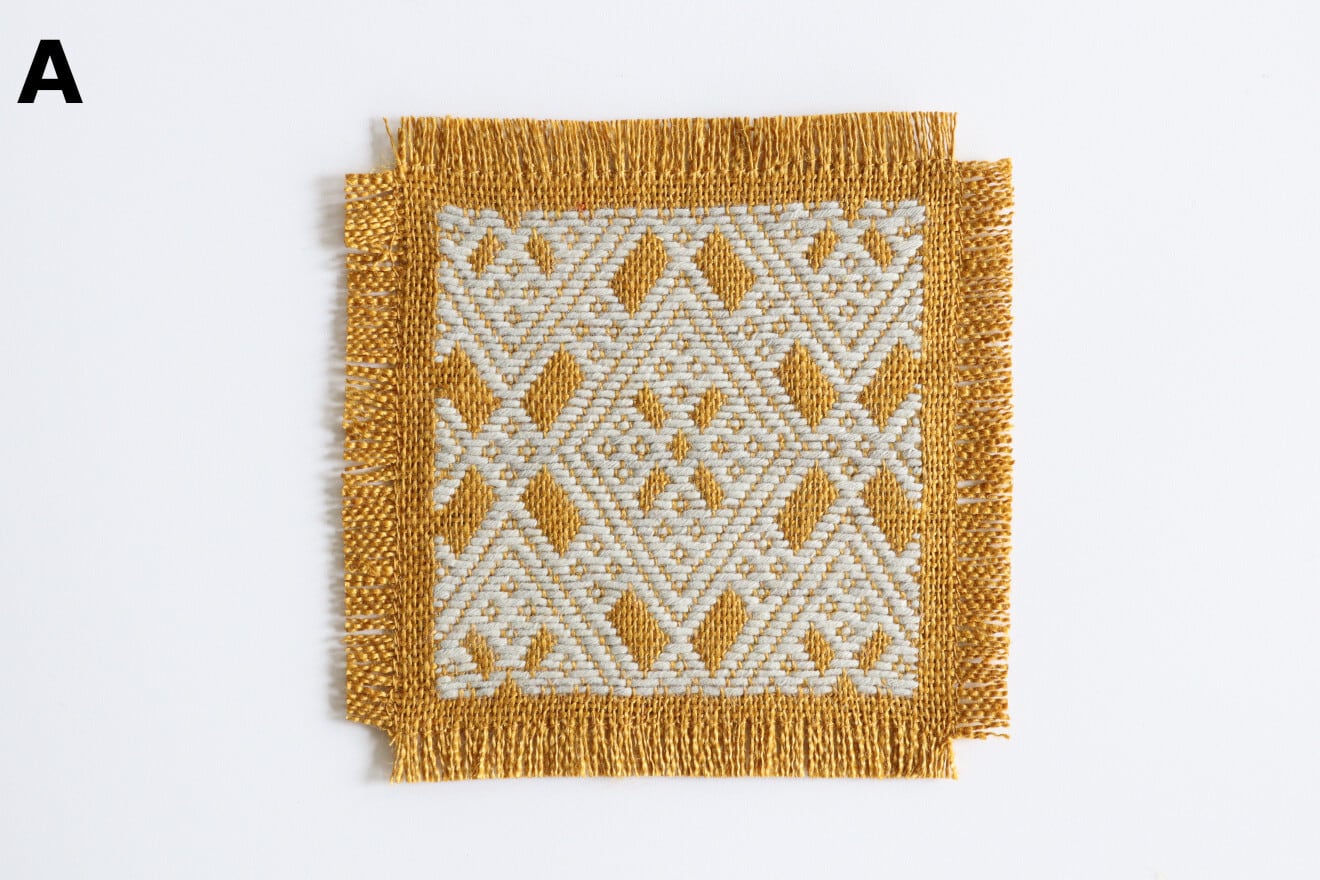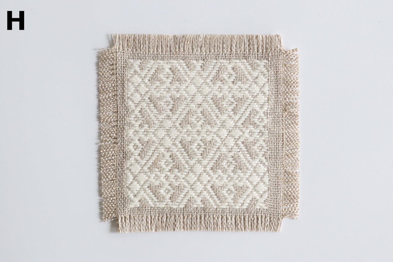 麻の生地に木綿糸で一針一針丁寧に刺したこぎん刺しのコースター。