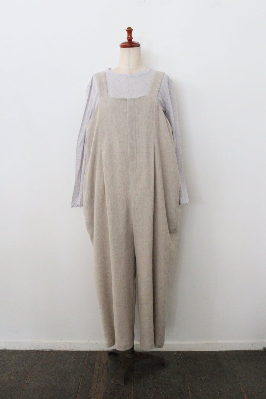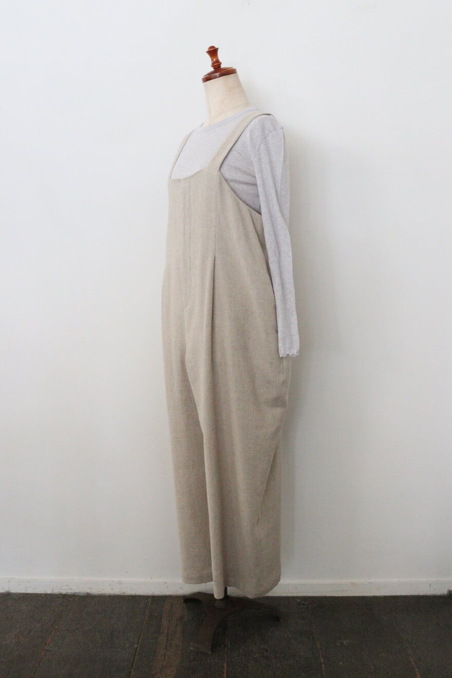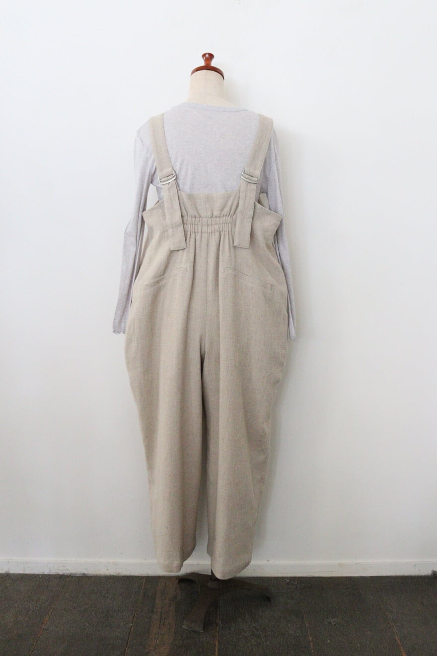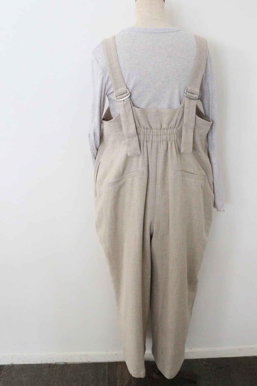 ouvert コットンリネンパナマ1タックサロペットパンツ