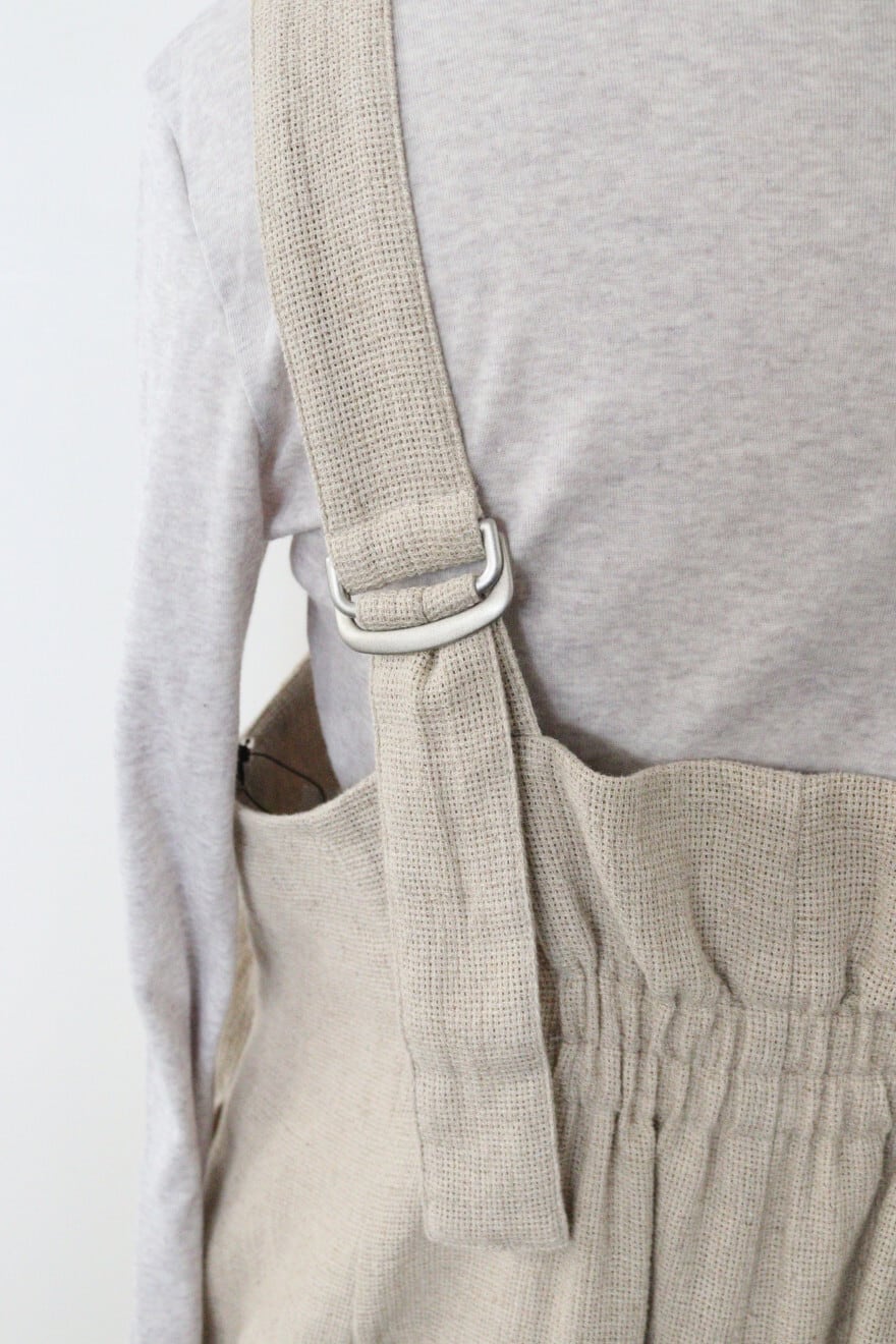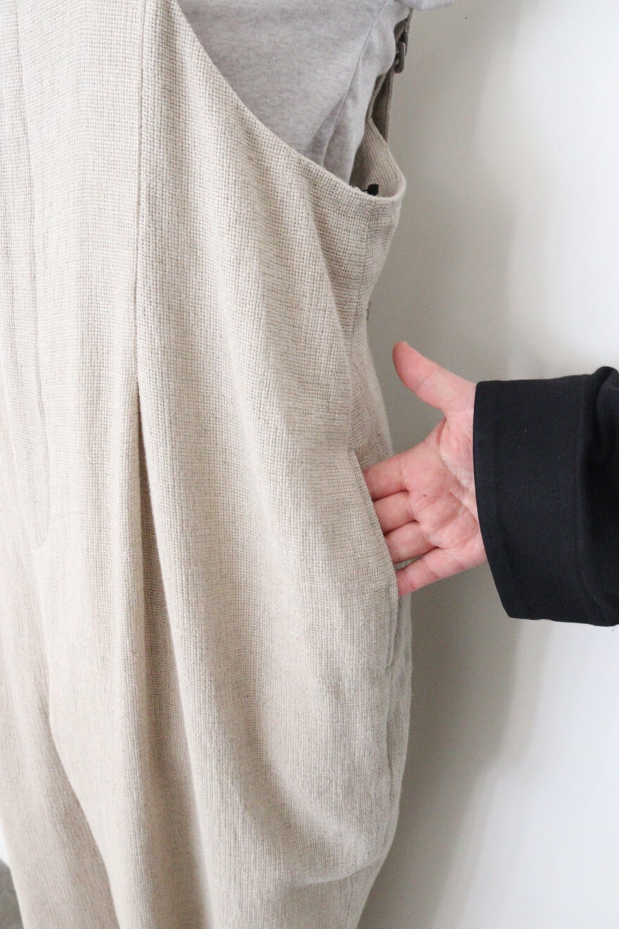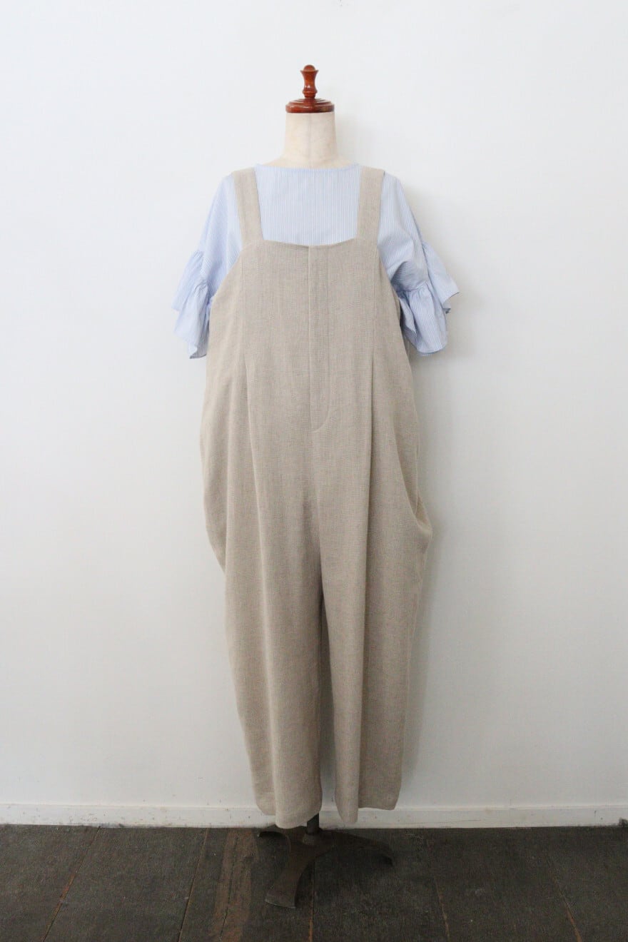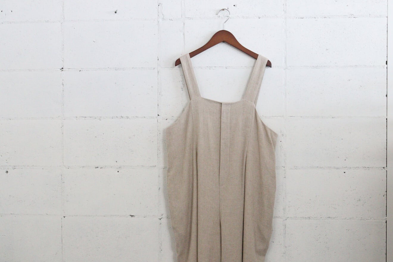 ouvert コットンリネンパナマ1タックサロペットパンツ