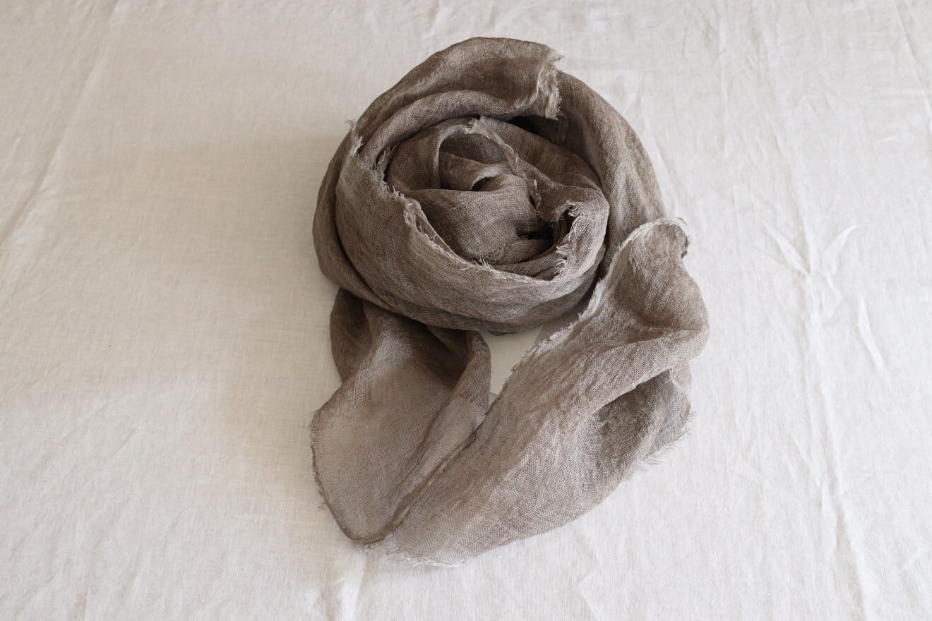 さらりとした質感のリネン素材で、使い始めはシャリっとした質感ですが、使い込むほどに空気を含んだようにやわらかな質感に変化していくのが魅力の一枚。