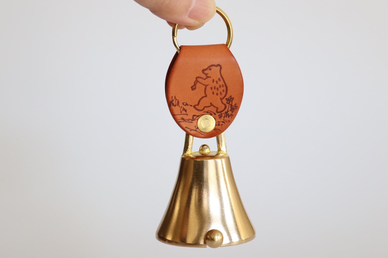 分銅に革ベルトが付いたきれいな音のクマ除け用のくまベル。