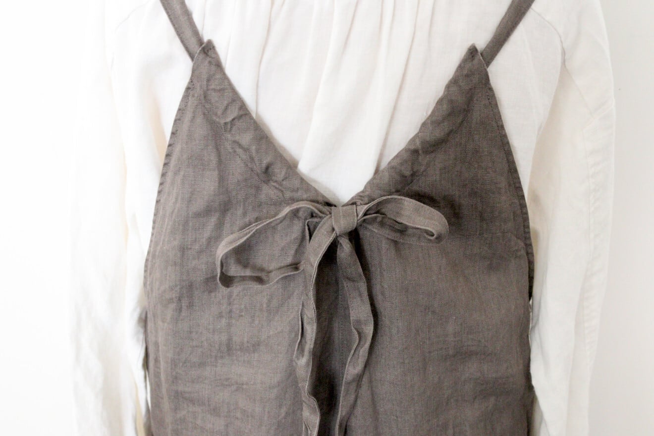 肩ひもは後ろで結ぶリボン仕様で長さ調整可能。