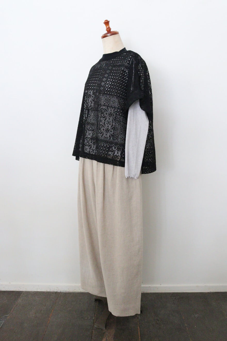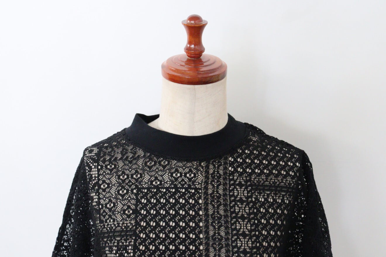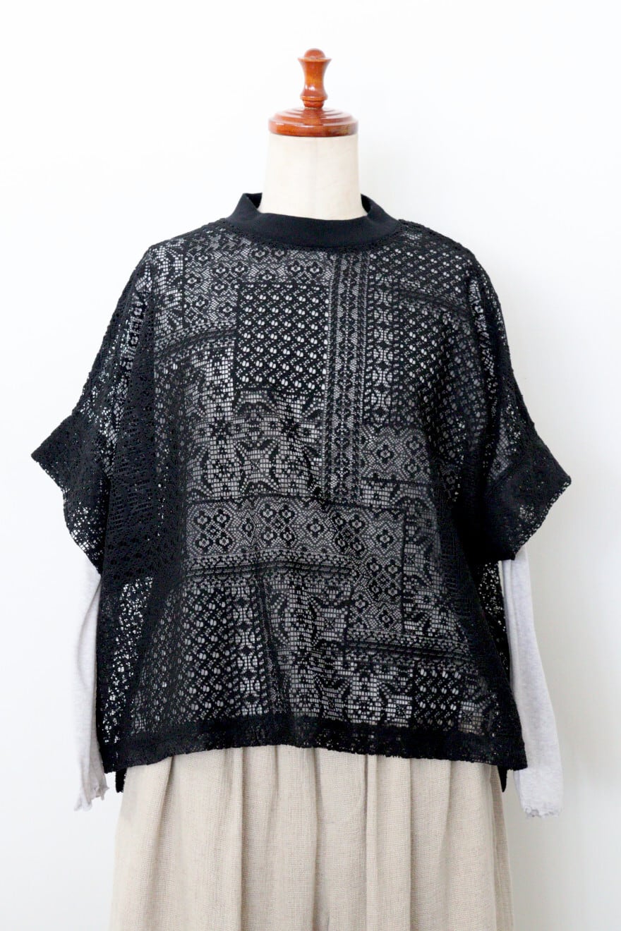 TISSU パッチワークレース モックネックドルマンTシャツ
