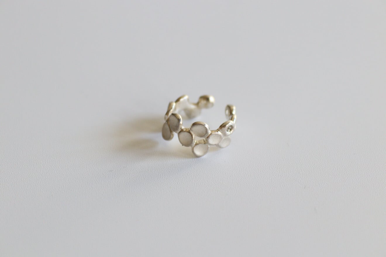 小さな〇が房のように連なった可愛らしいデザインのイヤーカフです。