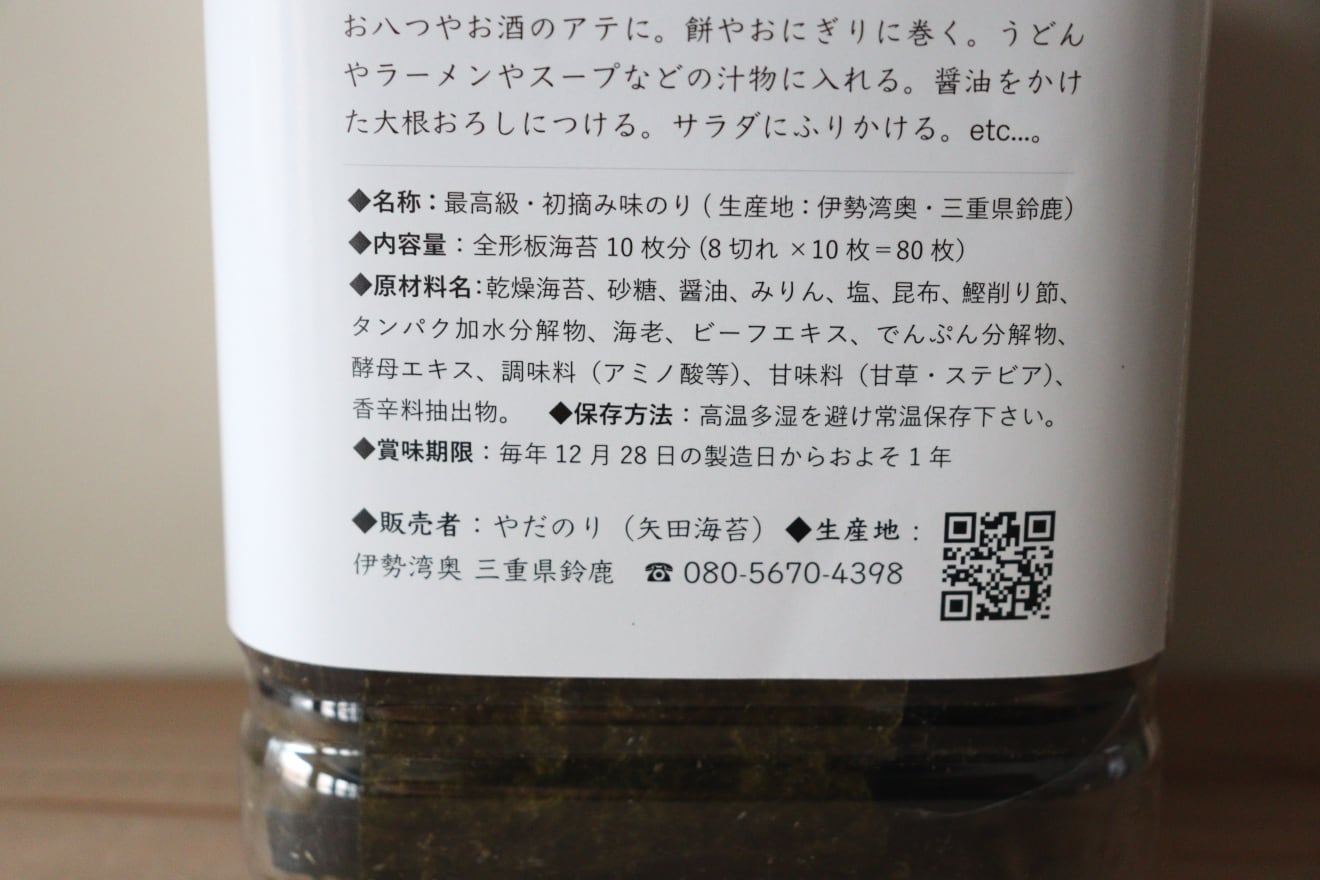 一級河川(木曽川・揖斐川・長良川)から流れる栄養豊かな伊勢湾奥・鈴鹿にて長年の経験を活かした海苔漁師によって丹念に育てられた「やだのり」。