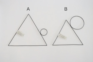 サイズ A:三角(1辺25cm)まる(直径4.5cm) B:三角(1辺19.5cm)まる(直径9.0cm)